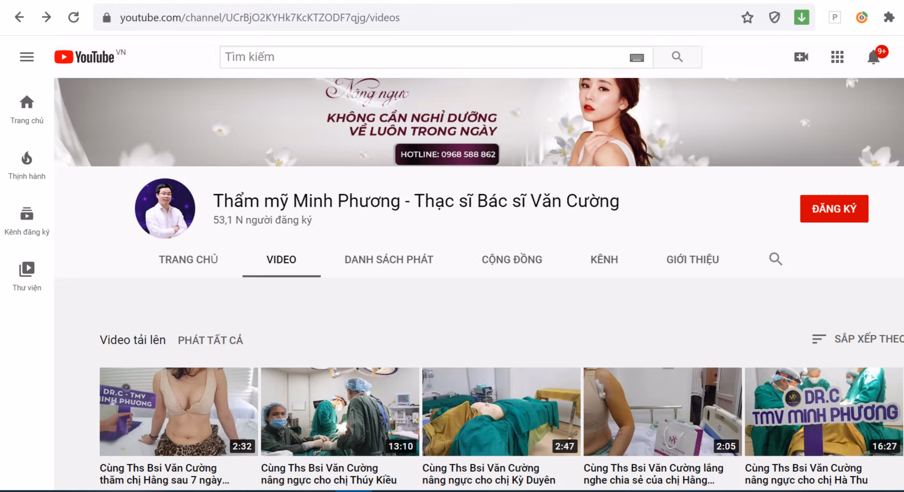 Cụ thể, kênh Youtube của thẩm mỹ viện Minh Phương có đến hàng trăm clip ghi lại quá trình phẫu thuật ngực, thăm khám ngực của các khách hàng. Trong đó, chủ yếu là hình ảnh vòng 1 của chị em sau khi đã thực hiện phẫu thuật nâng ngực tại đây.