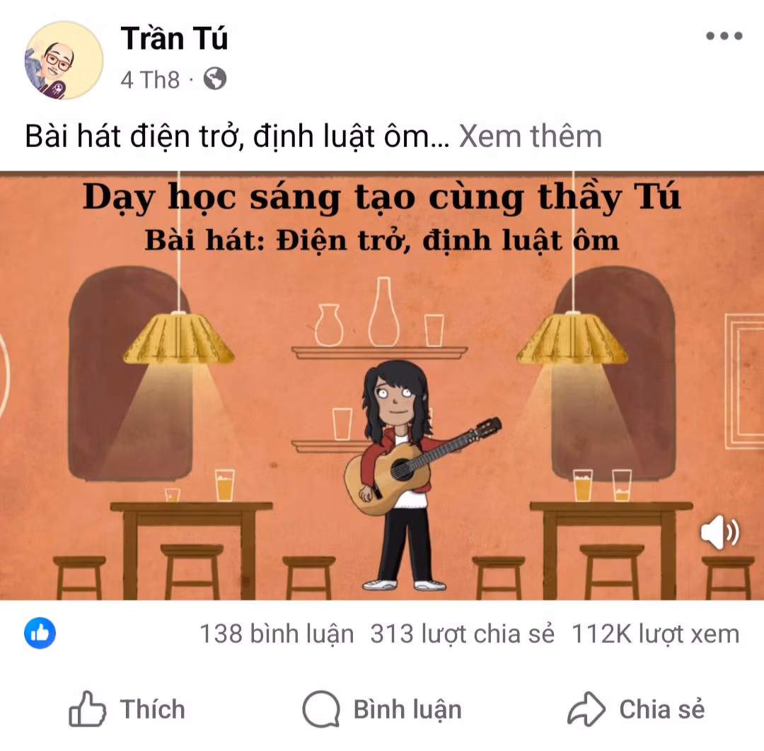 Không chỉ vậy, với đam mê Lịch sử từ nhỏ, thầy Tú còn sáng tác thơ, phổ nhạc những câu chuyện lịch sử như Trần Quốc Toản bóp nát quả cam, Lý Thường Kiệt đánh quân xâm lược đến các mốc lịch sử của các triều đại… rồi đưa lên fanpage nhà trường, giúp học sinh yêu Lịch sử theo cách tự nhiên nhất.
