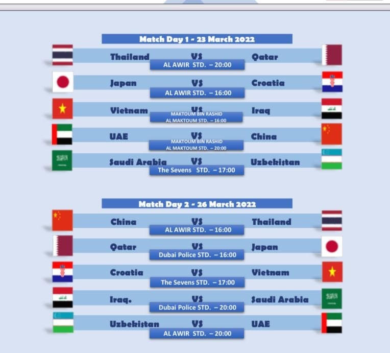 Ngoài việc thay đổi giờ thi đấu, tuyển Việt Nam cũng phải đổi địa điểm thi đấu. Thay vì đá ở sân Al Awir như dự kiến, đội sẽ chơi ở sân Al Maktoum. Những thay đổi bất ngờ bất ngờ từ BTC giải khiến cho cả đội U23 Việt Nam phải thay đổi kế hoạch chuẩn bị.