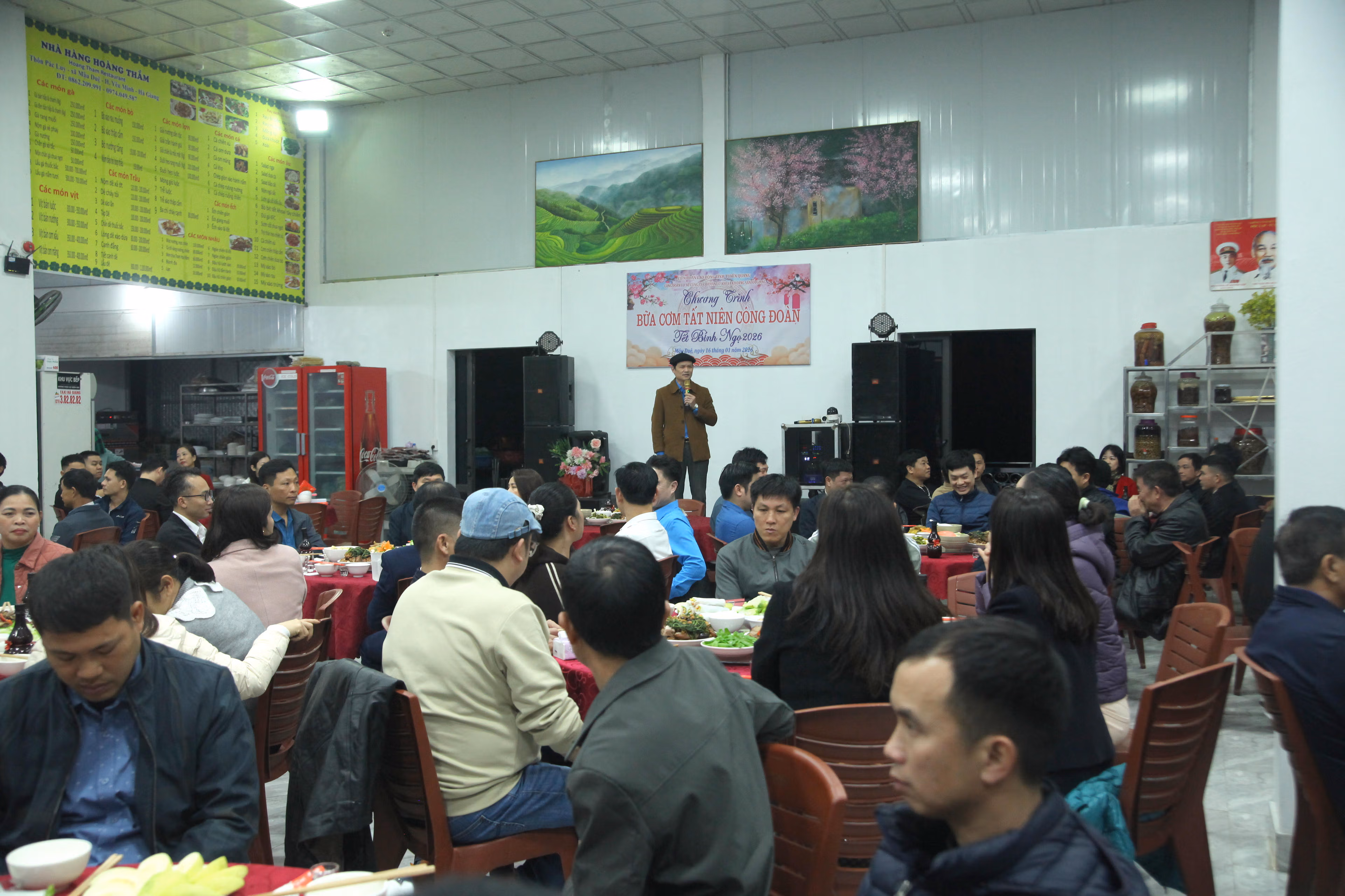 Ngay sau chương trình tuyên truyền, “Bữa cơm Công đoàn” do Công đoàn Công ty Cổ phần Cơ khí và Khoáng sản Hà Giang tổ chức đã để lại nhiều cảm xúc. Trong không khí ấm cúng, những mâm cơm được chuẩn bị chu đáo không chỉ là bữa ăn thường ngày, mà còn là sự quan tâm cụ thể, thiết thực của tổ chức Công đoàn đối với đời sống vật chất, tinh thần của công nhân.