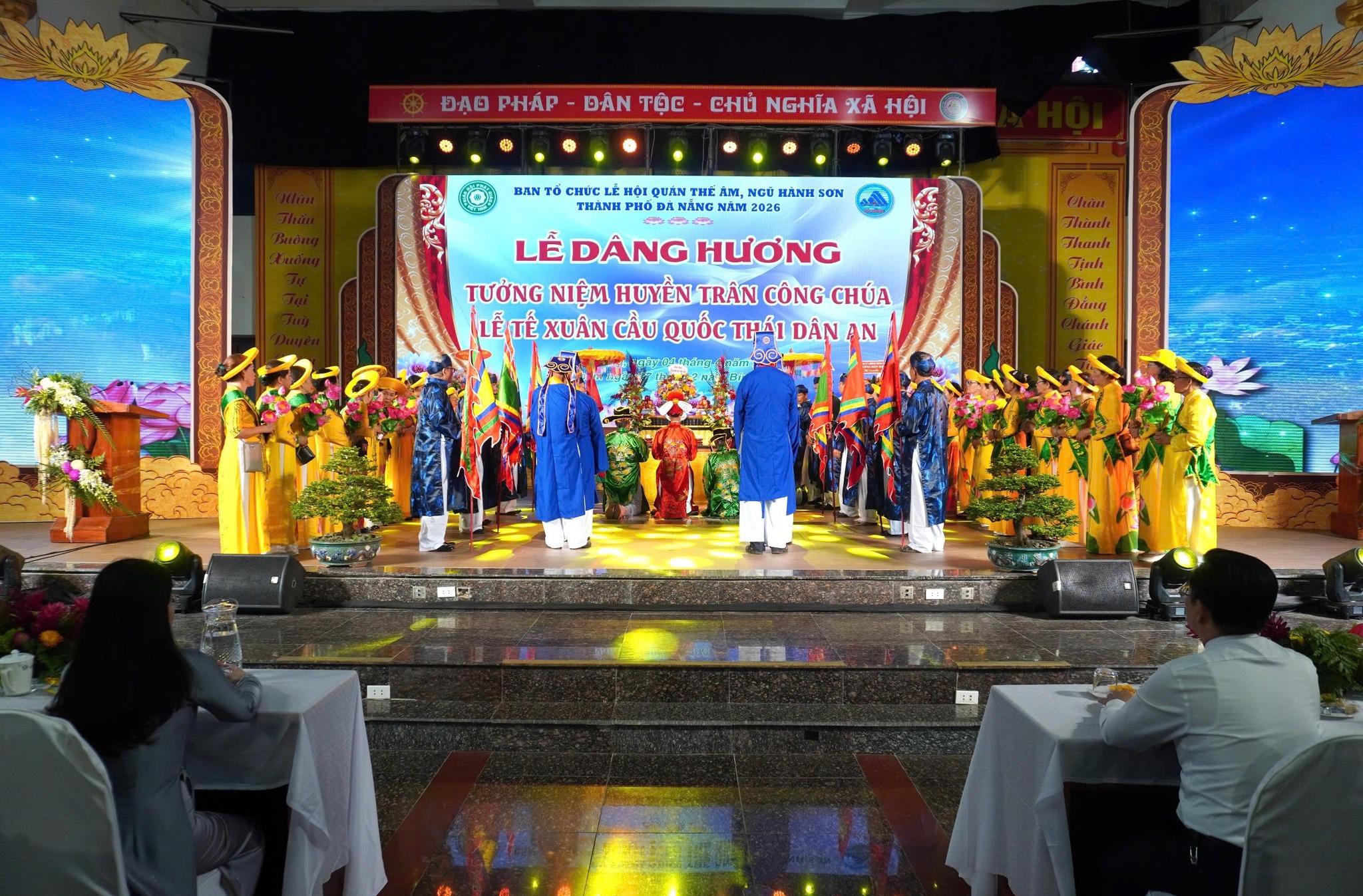 Sau Lễ dâng hương tưởng niệm tại miếu thờ Huyền Trân công chúa, đoàn di chuyển về sân khấu chính tại chùa Quán Thế Âm để thực hiện nghi Lễ tế xuân cầu quốc thái dân an.