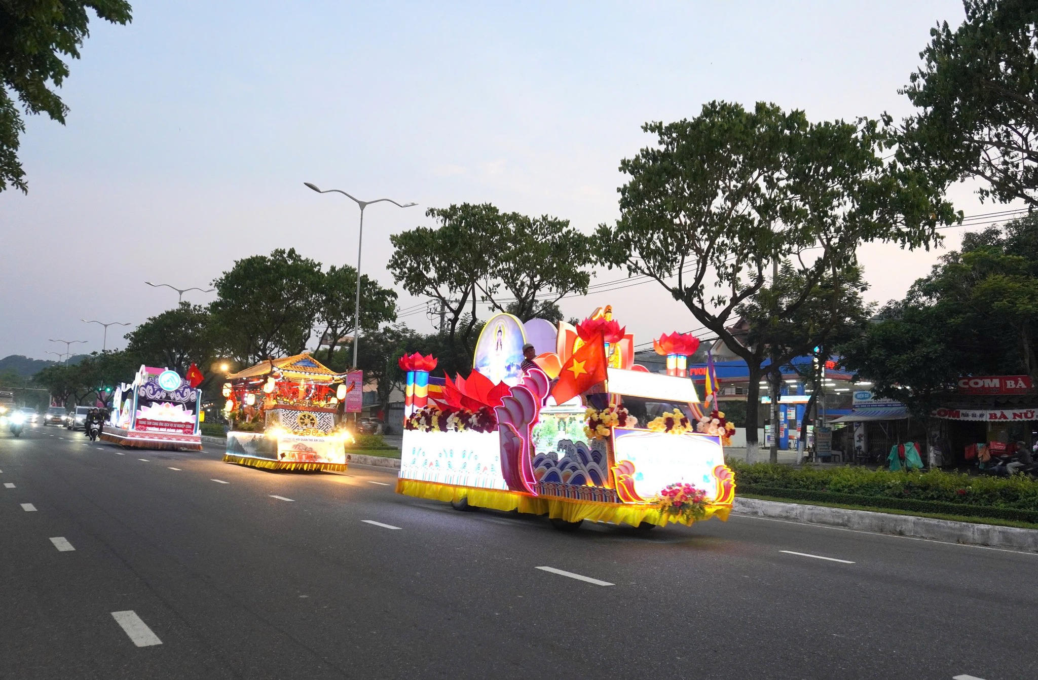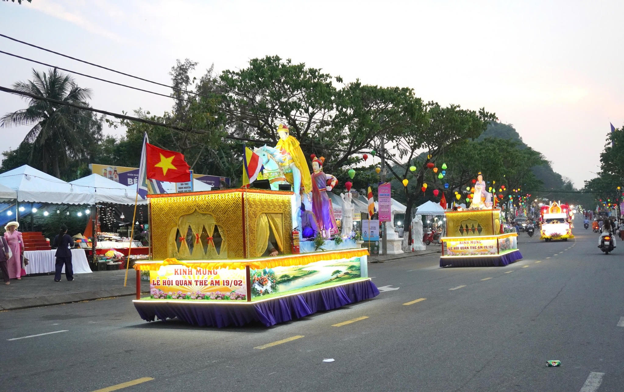 Hằng đêm, Lễ hội Quán Thế Âm tổ chức diễu hành xe hoa, thu hút đông đảo người dân và du khách thưởng lãm.