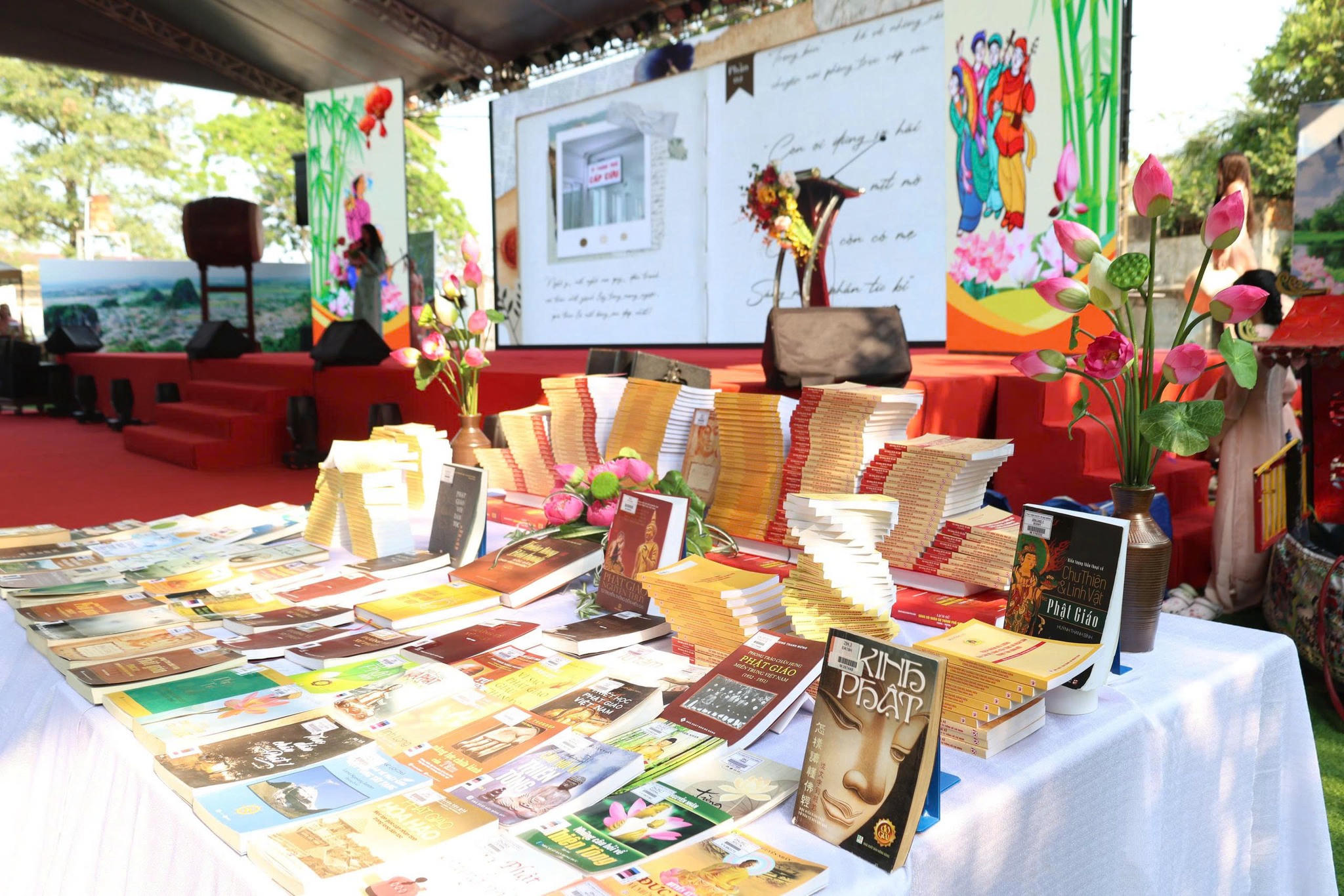 Đồng thời, trưng bày các tác phẩm Phật giáo chuyên ngành như thiền, kinh, luận, nghi lễ và các tác phẩm Phật giáo tổng hợp của tác giả nổi tiếng Thích Nhất Hạnh, Thích Pháp Hòa, Đạo Quang, Như Nhiên Thích Tánh Tuệ…