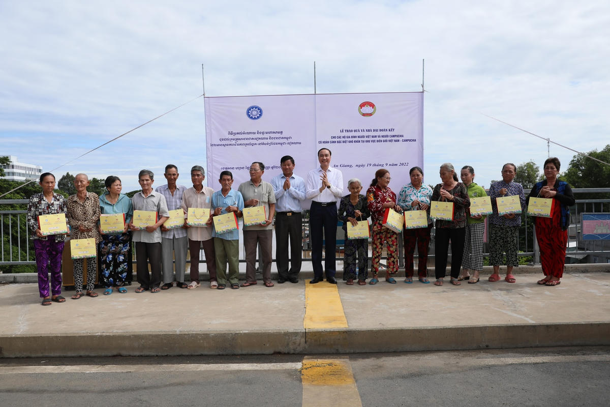 Theo đó, đã trao 10 căn nhà Đại đoàn kết, 300 phần quà (mỗi bên 5 căn nhà, 150 phần quà) cho các hộ gia đình có hoàn cảnh đặc biệt khó khăn tại khu vực biên giới Việt Nam - Campuchia.