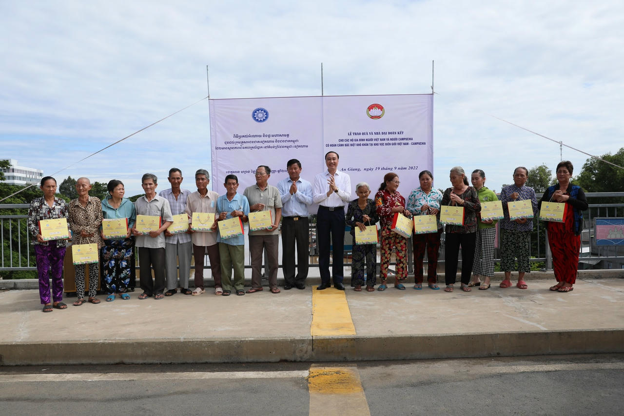 Sáng 19/9, tại Cửa khẩu Khánh Bình (huyện An Phú, tỉnh An Giang), lãnh đạo Đoàn đại biểu Hội đồng Quốc gia Mặt trận Đoàn kết phát triển Tổ quốc Campuchia và lãnh đạo Đoàn đại biểu UBTƯ MTTQ Việt Nam tổ chức lễ trao nhà Đại Đoàn kết và quà cho các hộ gia đình người Campuchia và người Việt Nam có hoàn cảnh đặc biệt khó khăn tại khu vực biên giới Việt Nam - Campuchia.