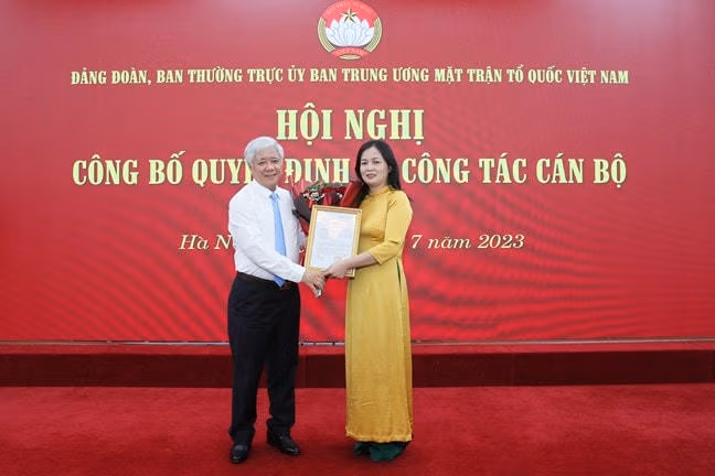 Được sự đồng ý của Đảng đoàn, Ban Thường trực Ủy ban Trung ương Mặt trận Tổ quốc Việt Nam, Bí thư Trung ương Đảng, Chủ tịch Ủy ban Trung ương Mặt trận Tổ quốc Việt Nam Đỗ Văn Chiến đã ký Quyết định số 2012/QĐ-MTTW-BTT ngày 24/7/2023 của Ban Thường trực Ủy ban Trung ương Mặt trận Tổ quốc Việt Nam về việc điều động, bổ nhiệm công chức lãnh đạo, quản lý.