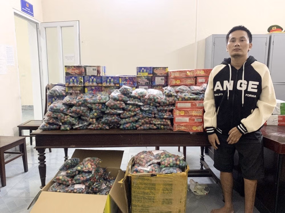 Tiến hành khám xét nơi ở của Nghĩa, lực lượng chức năng thu giữ thêm 5 hộp pháo loại 49 quả với khối lượng 8,6 kg.