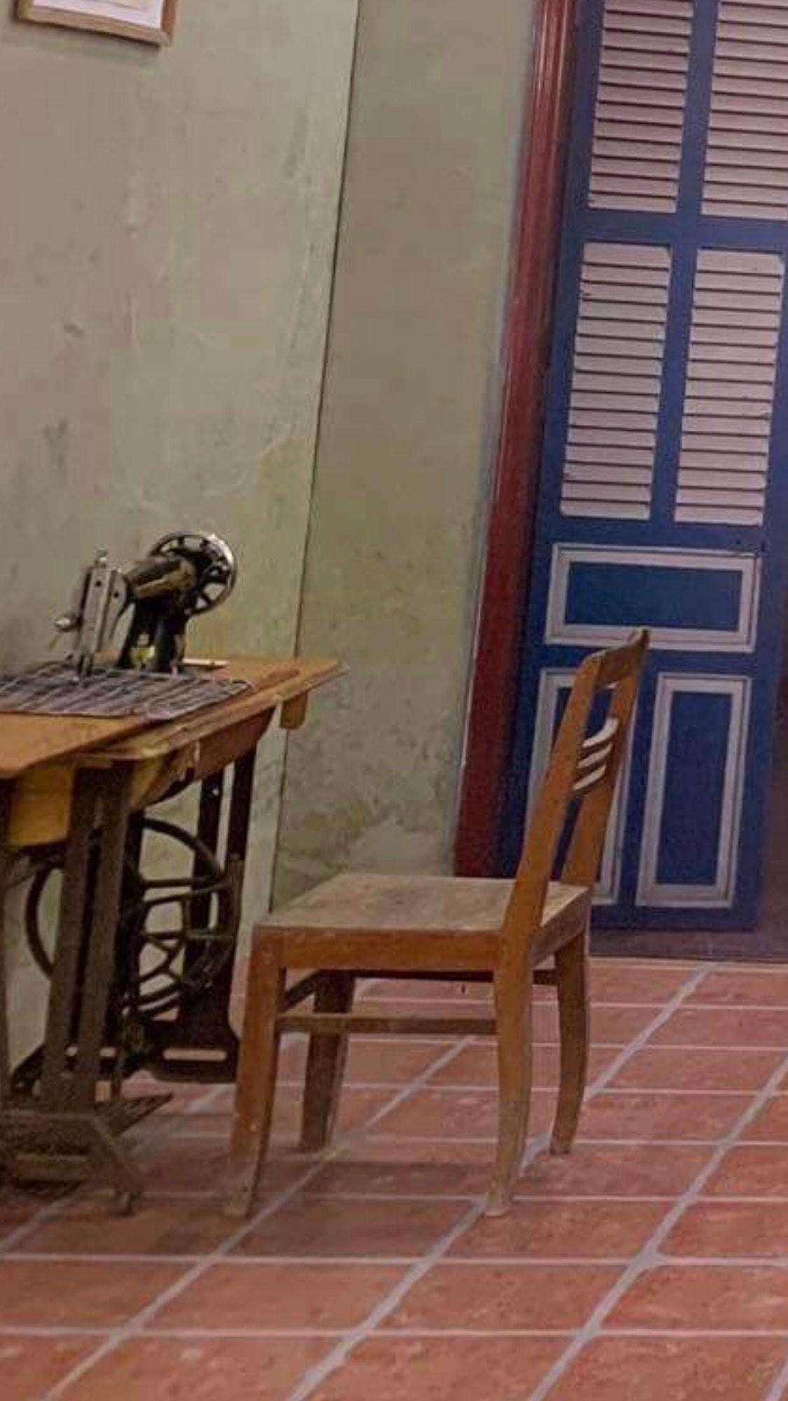Góc bên là chiếc máy khâu, thể hiện trong gia đình có bàn tay khéo léo của người phụ nữ, họ tự may vá quần áo cho các thành viên và đôi khi cũng giúp đỡ hàng xóm.