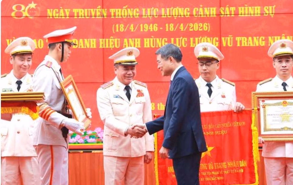 Cũng tại buổi lễ, Thủ tướng Lê Minh Hưng trao tặng danh hiệu Anh hùng lực lượng vũ trang Nhân dân cho Phòng Cảnh sát hình sự Công an TP Hà Nội.
