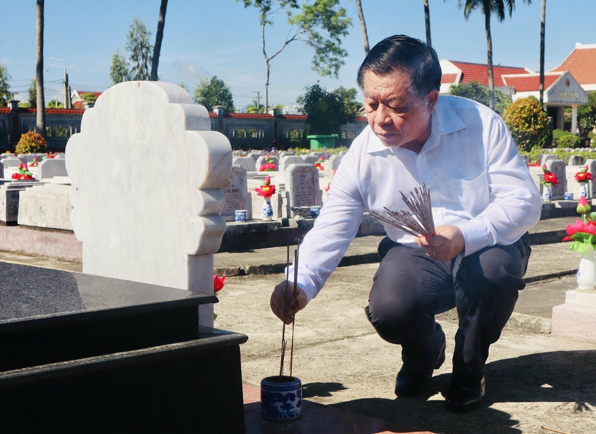 Dâng hương tưởng nhớ các Anh hùng Liệt sĩ, Mẹ Việt Nam anh hùng (VNAH) tại Nghĩa trang Liệt sĩ thị xã Điện Bàn, Trưởng ban Tuyên giáo Trung ương Nguyễn Trọng Nghĩa thành kính tri ân những đóng góp to lớn, sự hy sinh vĩ đại của các thế hệ đi trước để đất nước có được hòa bình, thống nhất, phát triển ổn định như hôm nay.