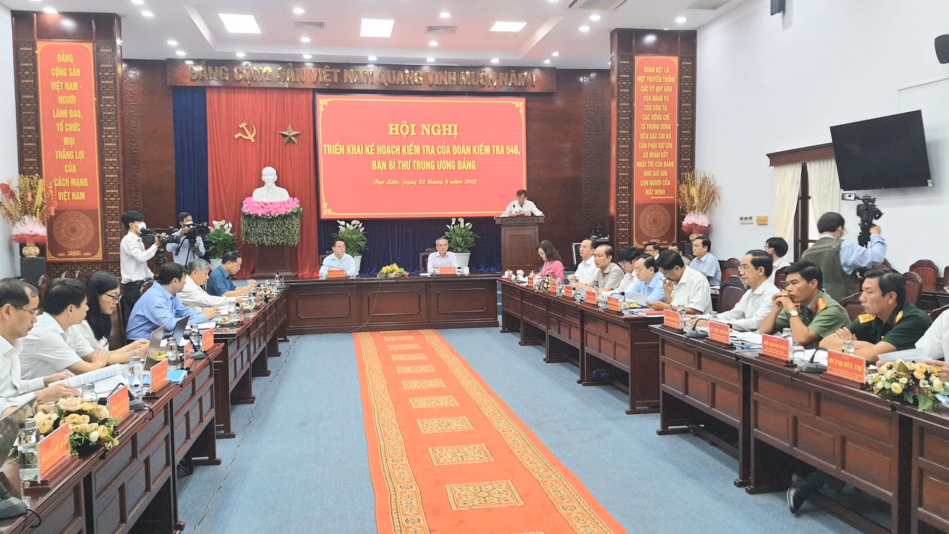 Sáng 22/8, tại Tỉnh ủy Bạc Liêu, Đoàn kiểm tra 546 của Ban Bí thư Trung ương Đảng do Thượng tướng Nguyễn Trọng Nghĩa, Bí thư Trung ương Đảng, Trưởng ban Tuyên giáo Trung ương làm trưởng đoàn có buổi làm việc với Ban Thường vụ Tỉnh ủy Bạc Liêu để thông báo Quyết định, kế hoạch và lịch làm việc của Đoàn kiểm tra.