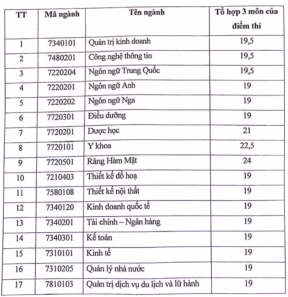 Trường Đại học Kinh doanh và Công nghệ Hà Nội chốt điểm sàn xét tuyển 2024