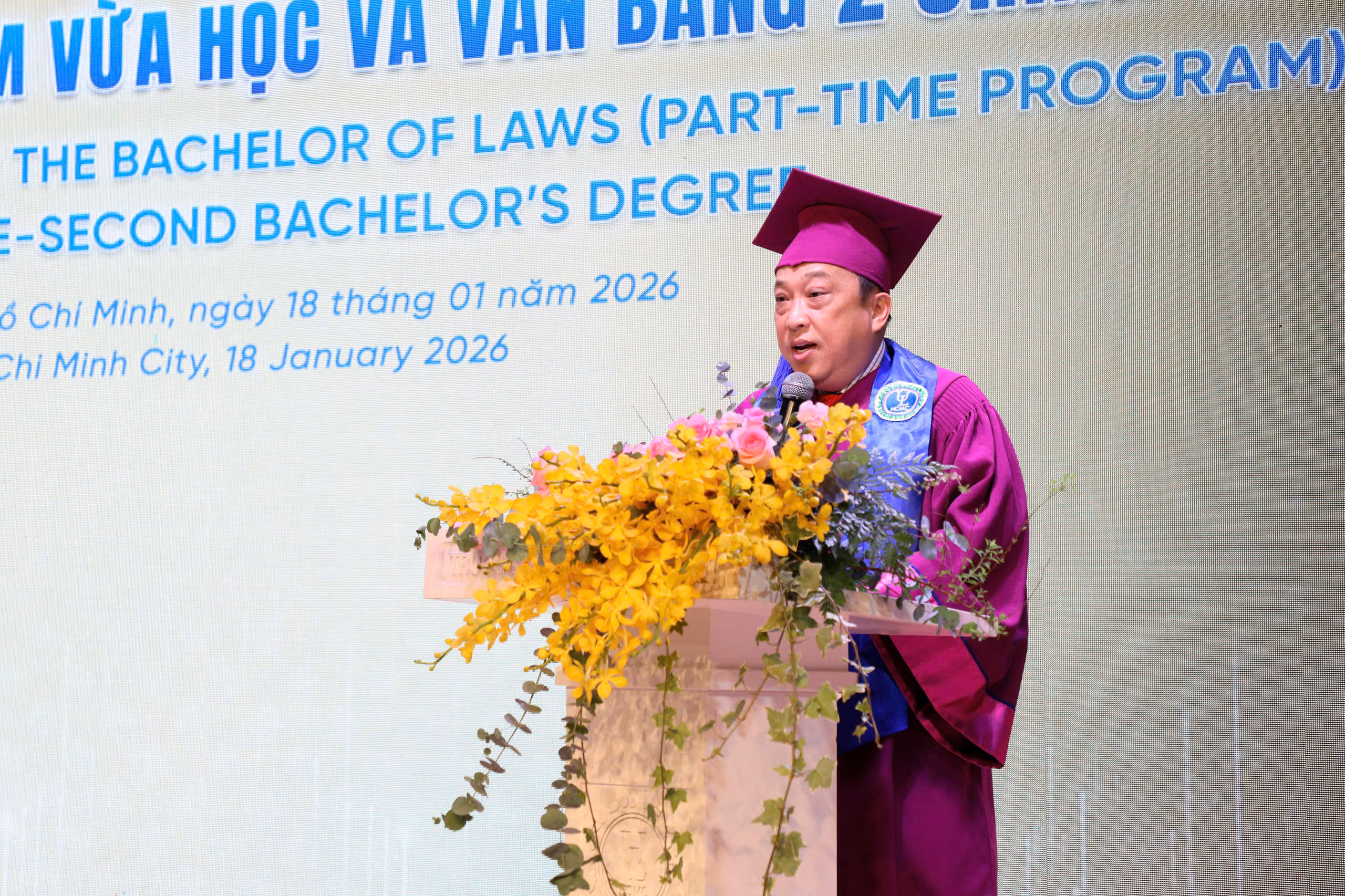 Ngày 18/1, Trường Đại học Luật TP Hồ Chí Minh tổ chức Lễ tốt nghiệp và trao bằng Cử nhân Luật Vừa làm vừa học và Văn bằng 2 hệ chính quy năm 2026 cho gần 700 sinh viên khóa 27–28–29 vừa làm vừa học và khóa 13–14 văn bằng 2.