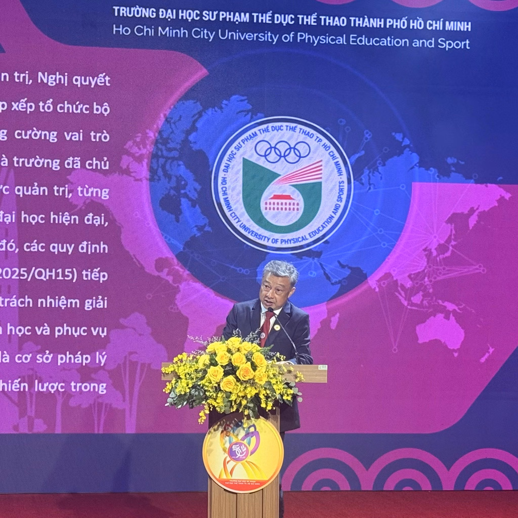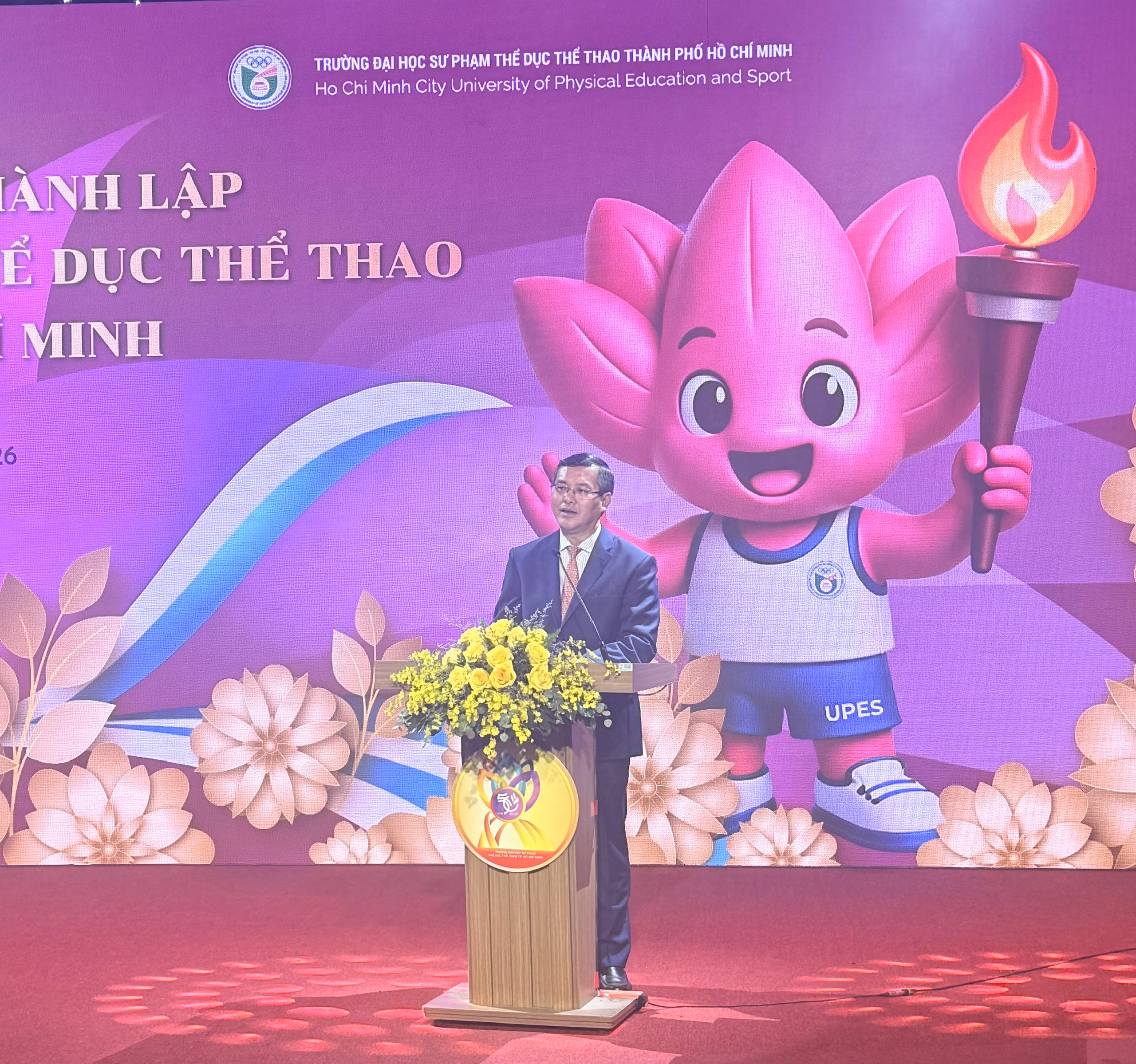 Cũng tại buỗi lễ, PGS.TS Nguyễn Văn Phúc - Thứ trưởng Bộ Giáo dục và Đào tạo chia sẻ đối với trường Đại học Sư phạm Thể dục Thể thao TP HCM cùng với hệ thống các trường Đại học Sư phạm Thể dục Thể thao cả nước thực hiện sứ mạng đào tạo đội ngũ thầy, cô giáo đáp ứng nhu cầu giáo dục thể chất của cả nước. Đối với Trường Đại học Sư phạm Thể dục Thể thao TP HCM từ ngày đầu thành lập số lượng thầy cô giáo còn ít, cơ sở vật chất thiếu thốn, còn nhiều khó khăn tuy nhiên bằng nhiều nỗ lực, tâm huyết qua các thế hệ đến nay nhà trường đã xây dựng đội ngũ giảng viên lớn mạnh cả về số lượng lẫn chất lượng có nhiều đề tài nghiên cứu khoa học về thể thao có giá trị, hợp tác trong và ngoài nước ngày càng mở rộng và đồng thời trường cũng góp phần đào tạo huấn luyện viên, trọng tài cho thể thao trong nước.