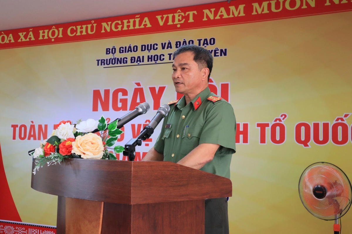 Phát biểu tại Ngày hội “Toàn dân bảo vệ an ninh Tổ quốc”, Đại tá Nguyễn Hữu Lương, Trưởng phòng An ninh chính trị nội bộ Công an tỉnh Đắk Lắk nhấn mạnh: "Việc tổ chức Ngày hội “Toàn dân bảo vệ an ninh Tổ quốc” tại Trường Đại học Tây Nguyên có ý nghĩa hết sức quan trọng nhằm nâng cao nhận thức, ý thức trách nhiệm cho cán bộ và học sinh, sinh viên của trường trong sự nghiệp giữ gìn an ninh Tổ quốc".
