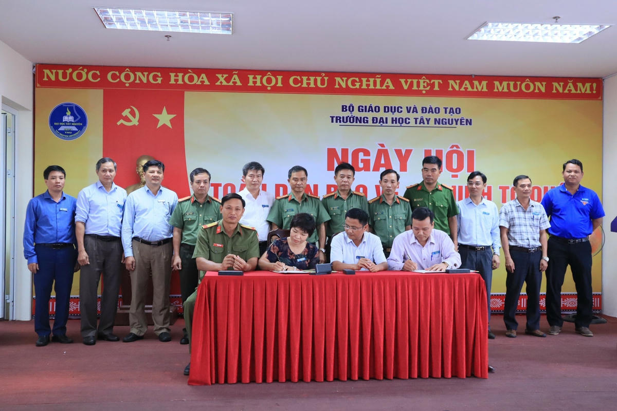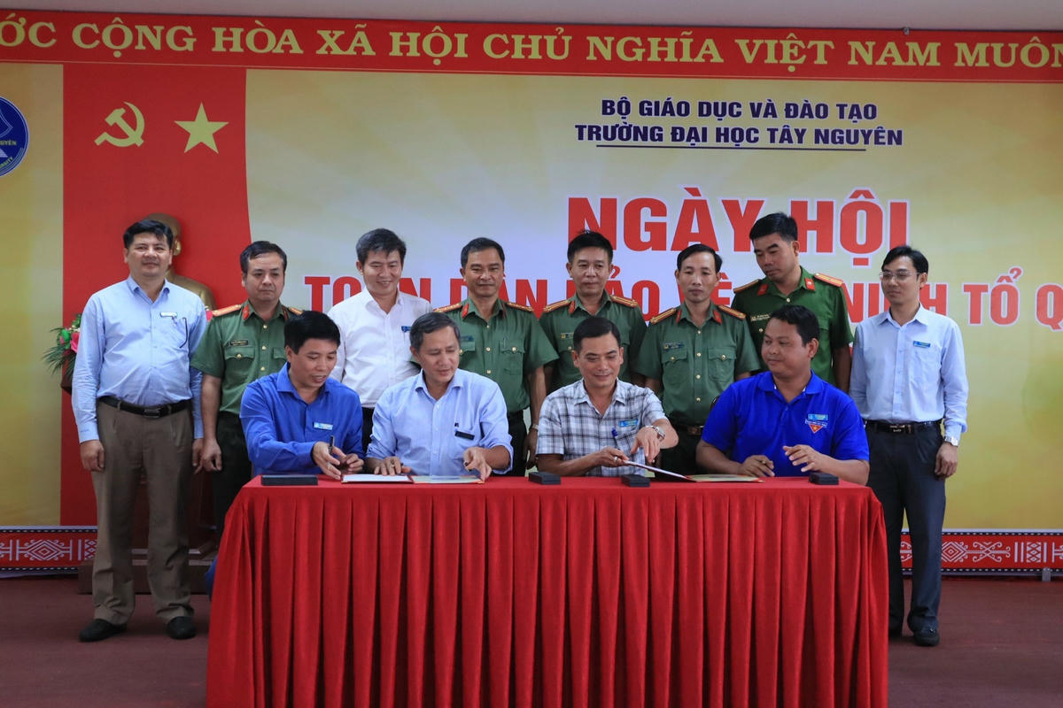 Tại ngày hội, đại diện các đơn vị trong nhà trường đã ký cam kết thi đua xây dựng Trường Đại học Tây Nguyên đạt tiêu chuẩn “An toàn về an ninh trật tự”.