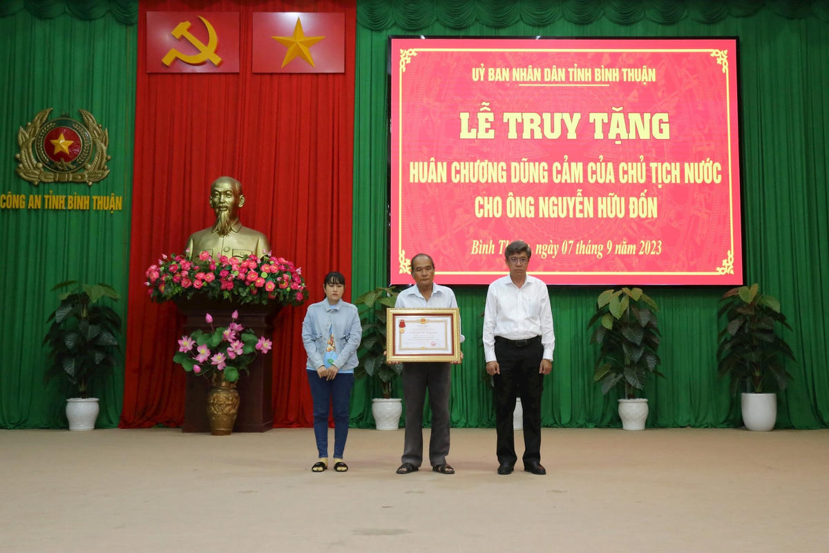 Tại buổi lễ, thừa ủy quyền của Chủ tịch nước, UBND tỉnh Bình Thuận đã trao Huân chương dũng cảm của Chủ tịch nước cho anh Nguyễn Hữu Đốn, trú thôn Xuân Tài, xã Phong Nẫm, TP. Phan Thiết (Bình Thuận) vì đã có hành động dũng cảm, hy sinh trong khi cứu người, cứu tài sản cho Nhân dân, nhưng không may bị điện giật tử vong.