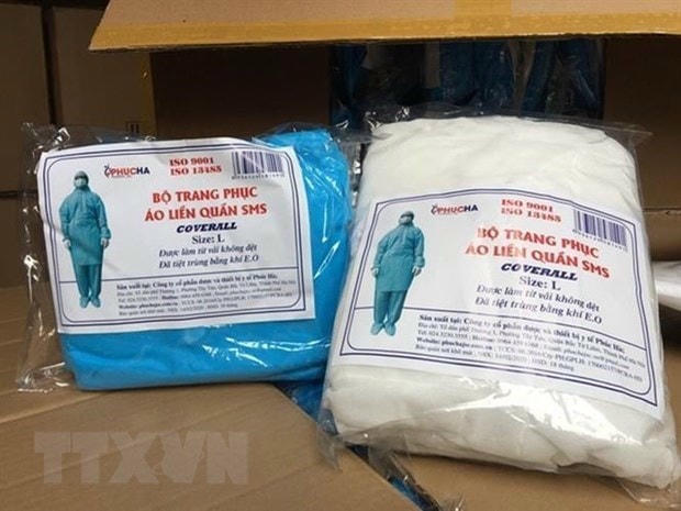 Sau đó, đối tượng chỉ đạo nhân viên đóng gói, dán tem thành bộ trang phục bảo hộ hoàn chỉnh, đem bán thu lời bất chính.