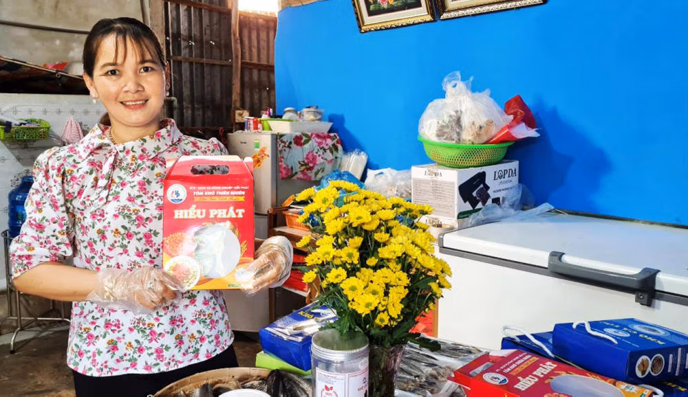 Không dừng lại ở cây lúa, chị Thoa còn tìm hướng phát huy lợi thế vùng nguyên liệu và văn hóa bản địa. HTX mở rộng sang chế biến đặc sản như: tôm khô, khô cá lóc, mắm tôm chua, dưa bồn bồn, nón bồn bồn…