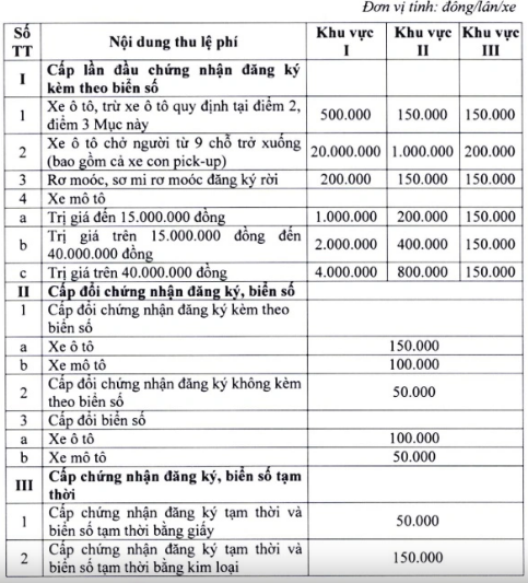 Theo đó, người dân đăng ký xe tại khu vực nào thì nộp lệ phí cấp chứng nhận đăng ký, biển số phương tiện giao thông theo mức thu lệ phí quy định tương ứng với khu vực đó.