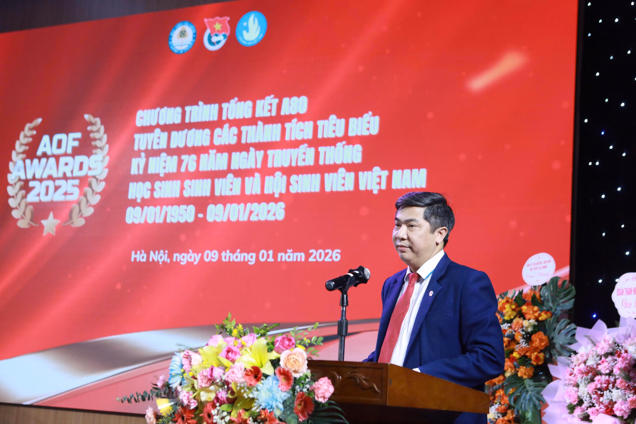 AOF AWARDS 2025 mang ý nghĩa đặc biệt, không chỉ tuyên dương các thành tích tiêu biểu mà còn ghi nhận những cá nhân, tập thể có đóng góp nổi bật trong nhiệm vụ A80 năm vừa qua, đồng thời chào mừng kỷ niệm 76 năm Ngày truyền thống Học sinh, Sinh viên và Hội Sinh viên Việt Nam (9/1/1950 - 9/1/2026), chào mừng Đại hội XIV của Đảng.