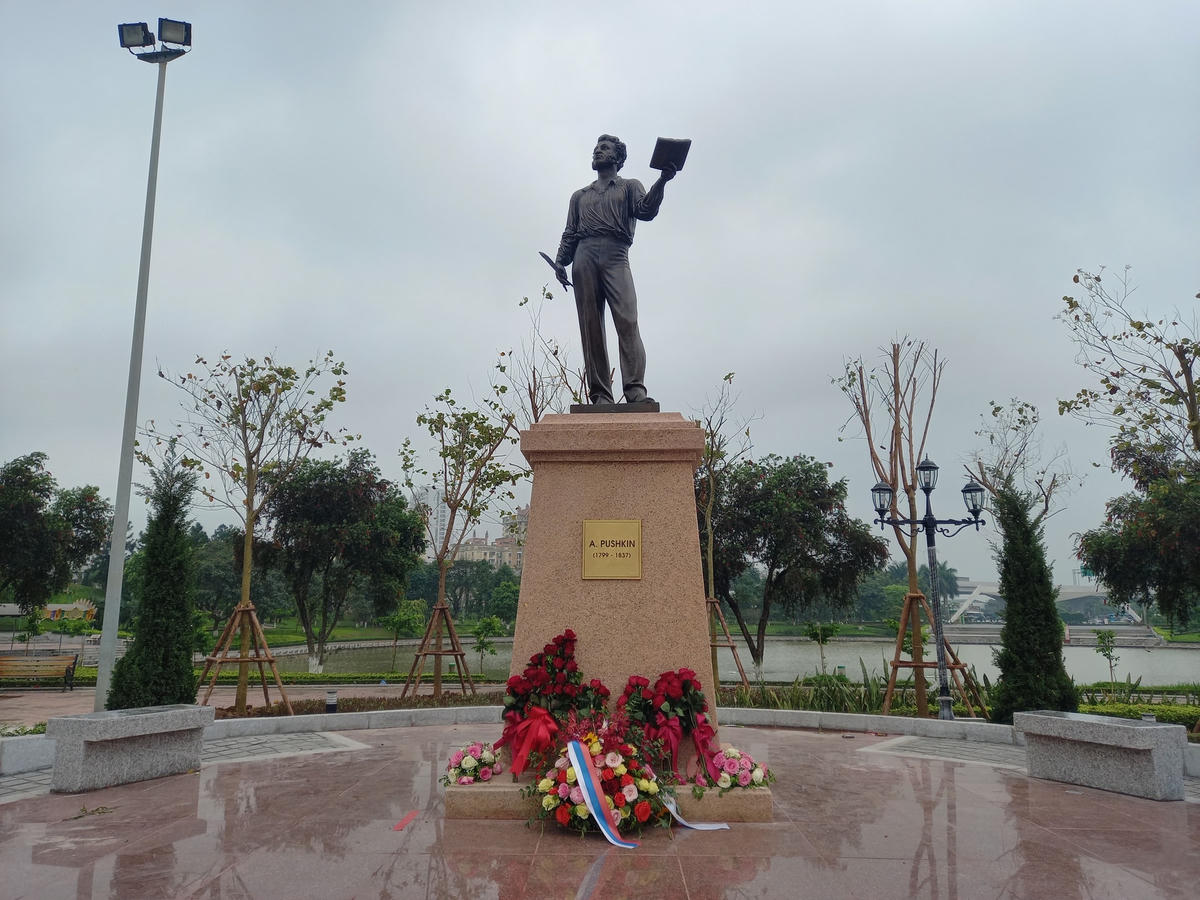 Vừa qua, tại Công viên Hòa Bình (quận Bắc Từ Liêm, Hà Nội), UBND TP Hà Nội phối hợp Đại sứ quán Nga tại Việt Nam tổ chức lễ khánh thành tượng đài đại thi hào Nga Alexander Sergeievich Pushkin.