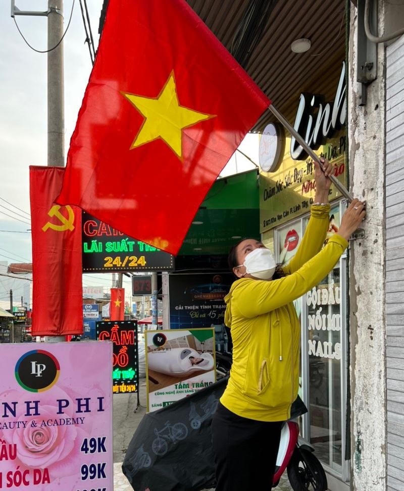 Bà Bùi Thị Hồng Lý, Chủ tịch Hội Liên hiệp Phụ nữ phường Linh Tây, TP Thủ Đức chia sẻ, việc treo cờ Tổ quốc là thể hiện lòng yêu nước, niềm tự hào dân tộc, là truyền thống văn hóa tốt đẹp, thể hiện lòng yêu nước niềm tự hào dân tộc, ý chí độc lập, khẳng định chủ quyền lãnh thổ; thể hiện nghĩa vụ công dân, và lòng quyết tâm đoàn kết xây dựng, bảo vệ Tổ quốc.