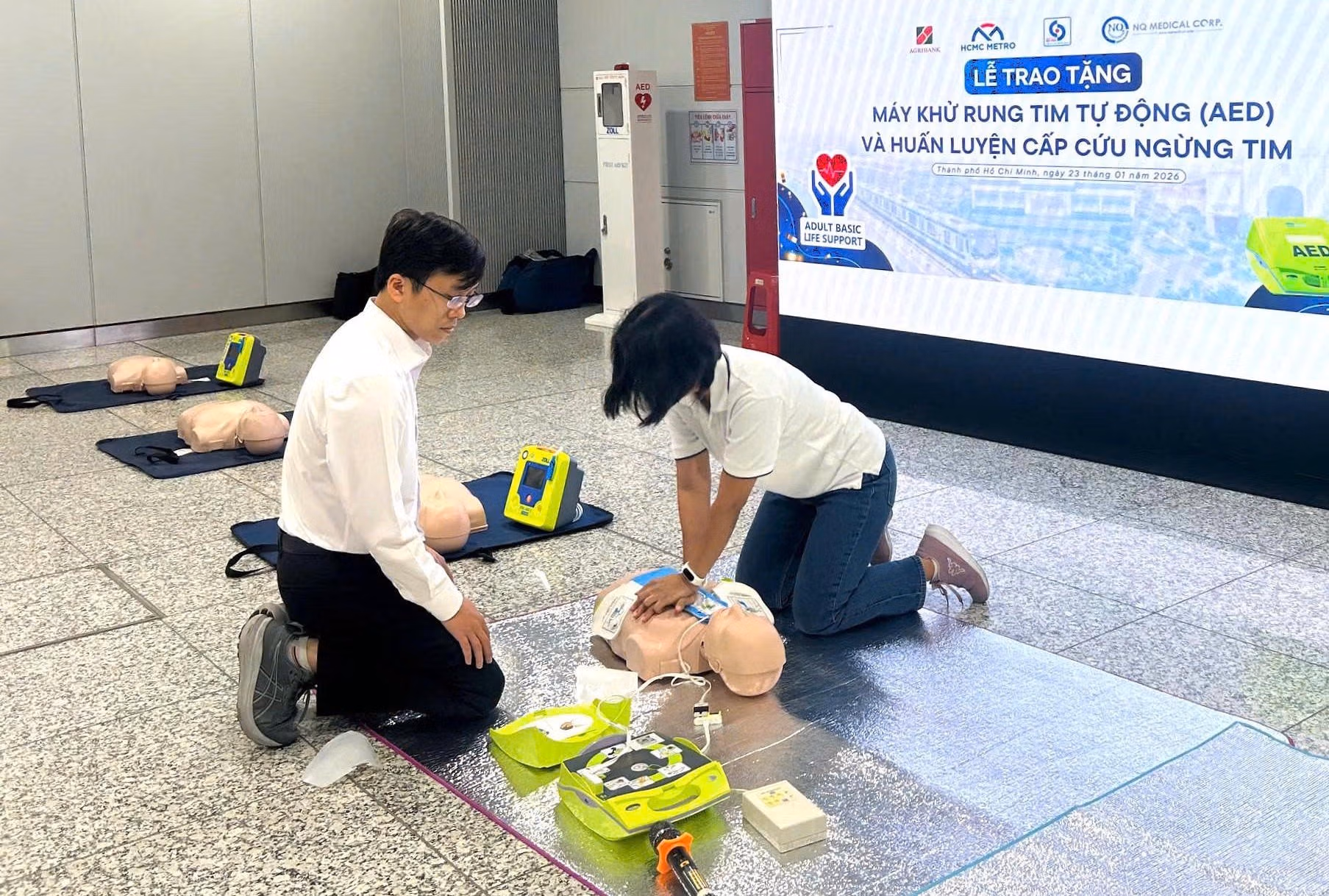 Ngay sau lễ trao tặng, Bệnh viện Nhân dân Gia Định đã triển khai chương trình huấn luyện thực hành cấp cứu ngừng tim và hướng dẫn sử dụng máy AED cho đội ngũ nhân viên tuyến Metro số 1. Thông qua chương trình, nhân viên metro được trang bị kiến thức và kỹ năng cần thiết để kịp thời hỗ trợ hành khách và người dân trong các tình huống khẩn cấp.