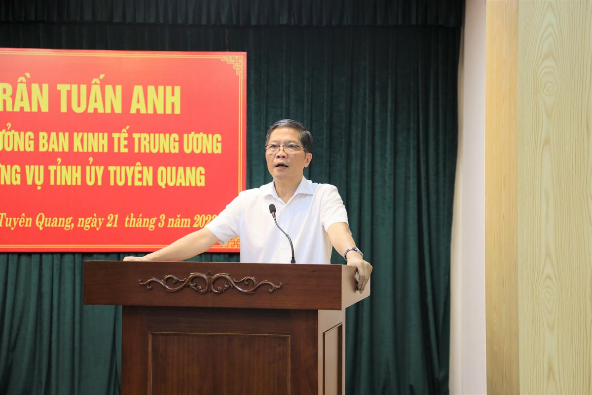 Chiều 21/3, ông Trần Tuấn Anh, Ủy viên Bộ Chính trị, Trưởng Ban Kinh tế Trung ương đã có buổi làm việc với Ban Thường vụ Tỉnh ủy Tuyên Quang về sơ kết 5 năm thực hiện Chỉ thị số 13-CT/TW ngày 12/2/2017 (Chỉ thị 13) của Ban Bí thư về tăng cường sự lãnh đạo của Đảng đối với công tác quản lý, bảo vệ và phát triển rừng.