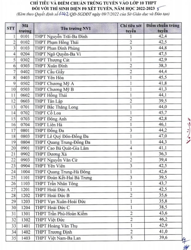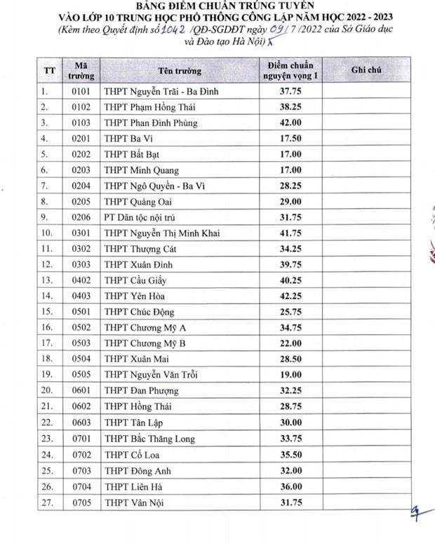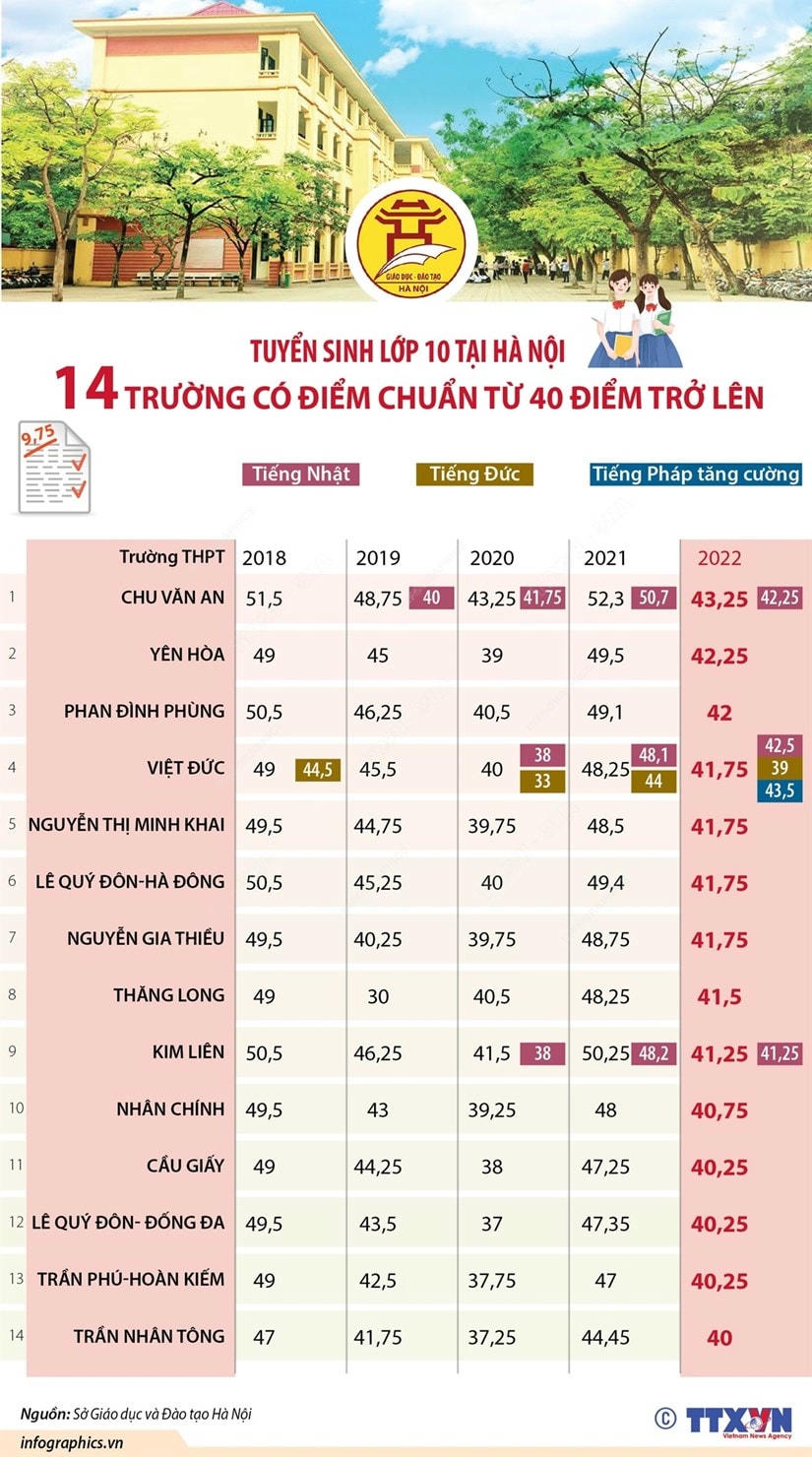 Trước đó, ngày 9/7, Sở Giáo dục và Đào tạo Hà Nội đã chính thức công bố điểm chuẩn vào lớp 10 trung học phổ thông các trường công lập trên địa bàn thành phố.