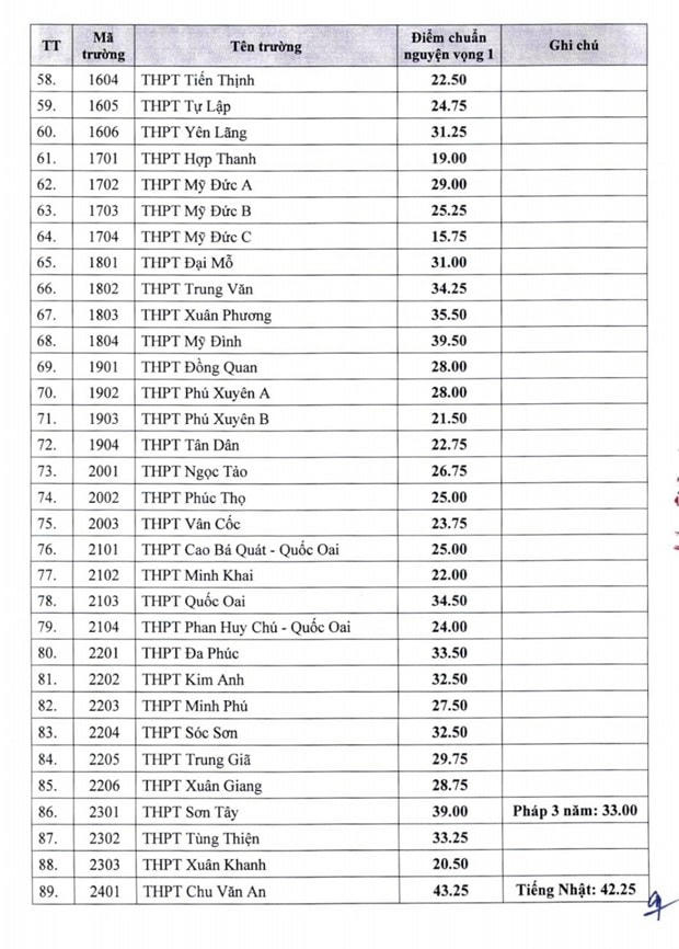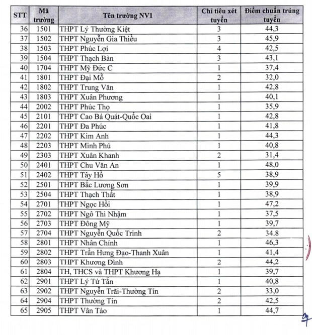 Trường THPT Chu Văn An có điểm chuẩn cao nhất năm nay là 43,25 điểm; trường THPT Yên Hòa đứng thứ hai với 42,25 điểm; thứ 3 là THPT Phan Đình Phùng với 42 điểm.