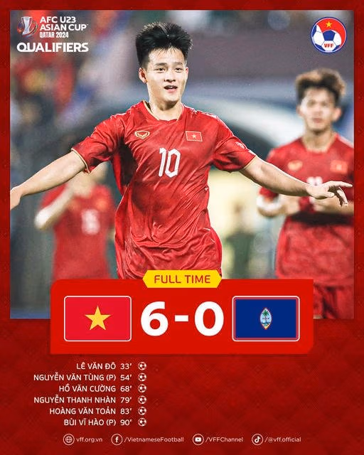 Thầy trò HLV Philippe Troussier đã giành được chiến thắng 6-0 trong ngày ra quân tại vòng loại U23 châu Á 2024 trên sân nhà trước U23 Guam.