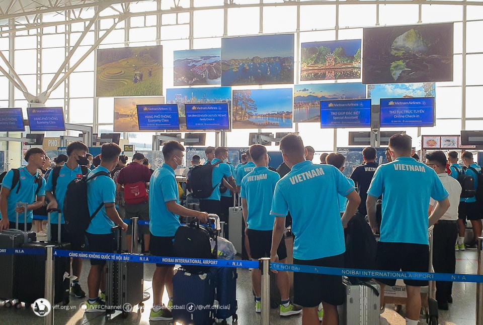 Khởi hành từ sân bay quốc tế Nội Bài - Hà Nội trên chuyến bay cất cánh lúc 8h50, toàn đội đã đặt chân tới sân bay quốc tế Suvarnabhumi vào lúc 10h30 cùng ngày. Tại đây, đội đã được phía bạn tổ chức đón tiếp chu đáo, bố trí khu vực ưu tiên làm thủ tục nhập cảnh, nhờ vậy đã tiết kiệm được rất nhiều thời gian cho thầy trò HLV Hoàng Anh Tuấn. Đặc biệt, Đại sứ quán Việt Nam tại Thái Lan cũng rất quan tâm đến lịch trình hoạt động của đội tuyển, cử đại diện ra sân bay đón và hỗ trợ nhiệt tình các thành viên của đội.