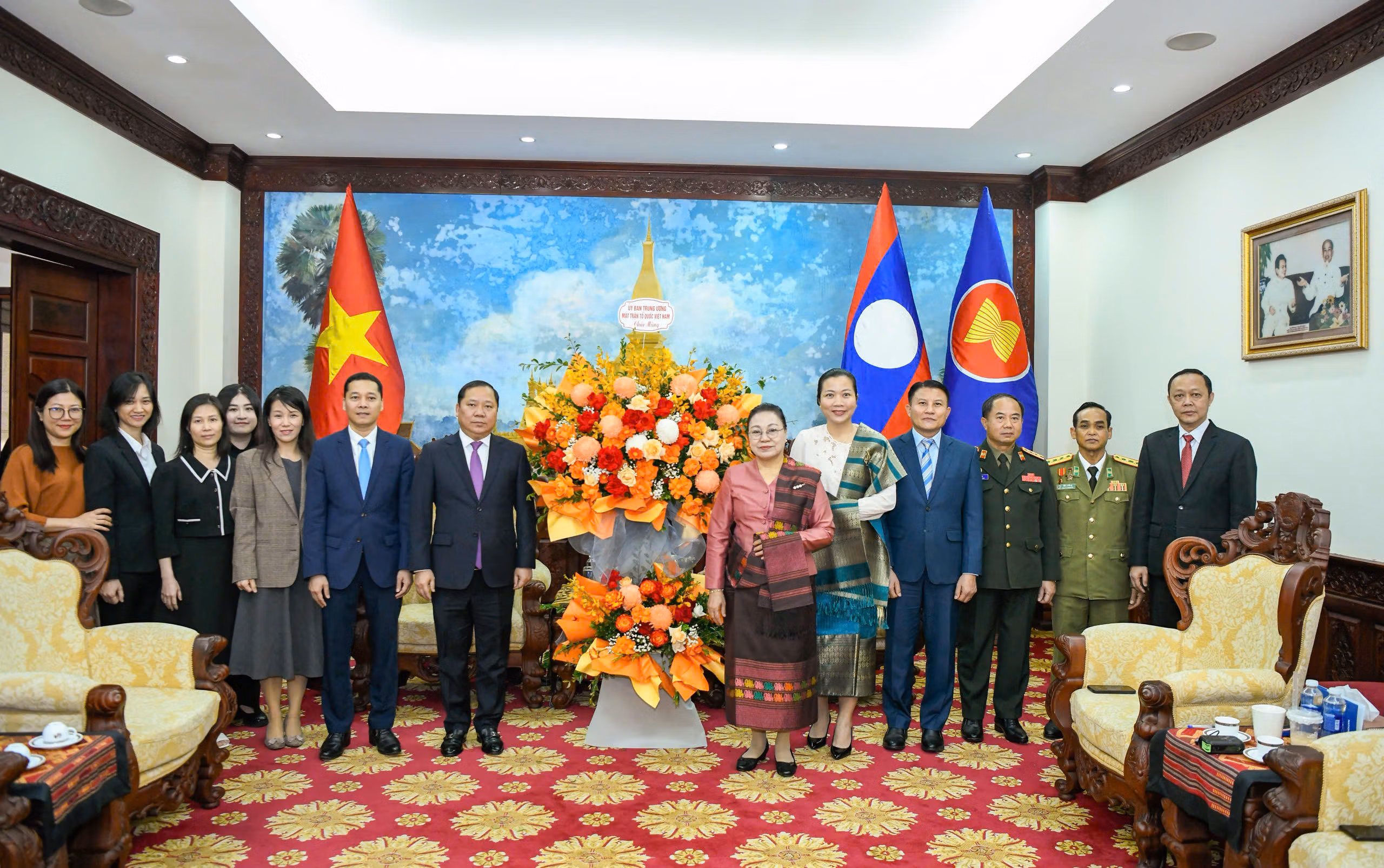 Thay mặt UBTƯ MTTQ Việt Nam, Phó Bí thư Đảng ủy MTTQ, các đoàn thể Trung ương Nguyễn Phi Long gửi lời chúc tốt đẹp nhất tới Đảng, Nhà nước và nhân dân các bộ tộc Lào nhân kỷ niệm 50 năm Quốc khánh.