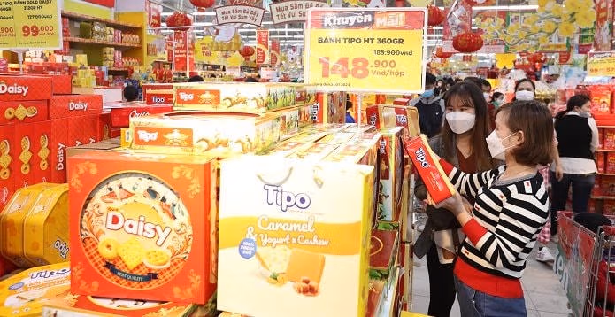 Khảo sát cho thấy, các loại bánh mứt kẹo, ô mai, trà, nước giải khát hàng Việt áp đảo trên thị trường. Tại chuỗi nhiều siêu thị, các loại bánh kẹo Việt như: Tràng An, Hải Hà, Richy, Kinh Đô, Hà Nội và các loại bánh mứt kẹo do trong nước sản xuất chiếm đa số.