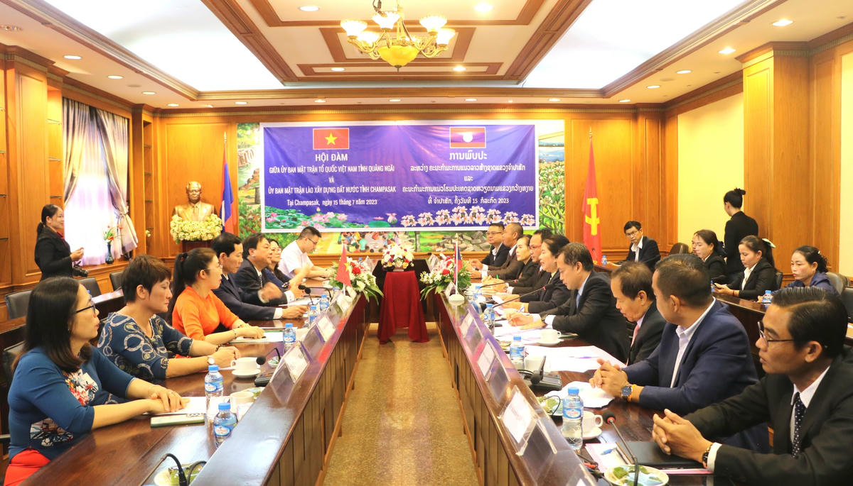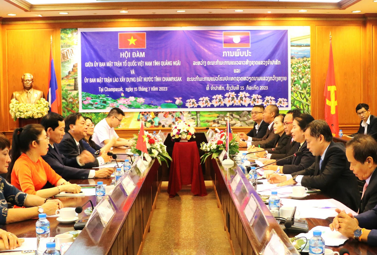 Sau buổi gặp gỡ, chào xã giao, Ủy ban MTTQ Việt Nam tỉnh Quảng Ngãi và Ủy ban Mặt trận Lào xây dựng đất nước tỉnh Champasak đã tiến hành hội đàm trao đổi kinh nghiệm về công tác Mặt trận. Dự Hội đàm có Ủy viên Ban Thường vụ Tỉnh uỷ, Trưởng Ban Dân vận Tỉnh uỷ, Chủ tịch Ủy ban MTTQ Việt Nam tỉnh Võ Thanh An và bà Vardasana Silima, Ủy viên Ban Thường vụ Tỉnh ủy, Chủ tịch Ủy ban Mặt trận Lào xây dựng đất nước tỉnh Champasak.