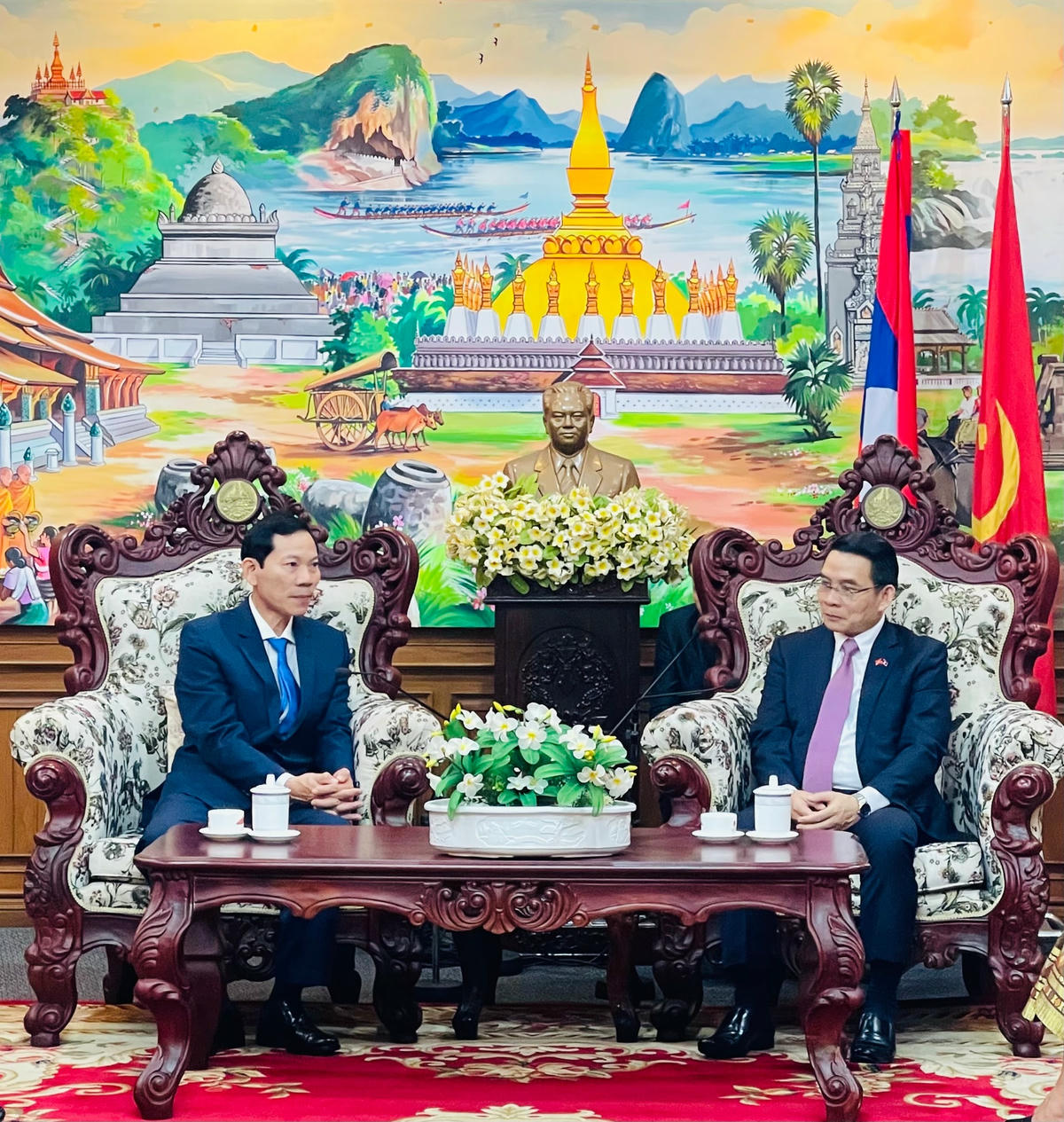 Tiếp và làm việc với Đoàn là ông Vilayvong Bouddakham - Bí thư, Tỉnh trưởng tỉnh Champasak và các thành viên lãnh đạo tại tỉnh Champasak.