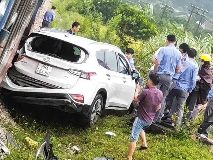Khi đó, xe ô tô nhãn hiệu Hyundai Santa Fe (chưa rõ danh tính người điều khiển) chạy từ đường mòn Hồ Chí Minh vào thôn Tân Hương, khi đến đoạn giao cắt với đường sắt thì bị tàu hỏa mang số hiệu SE-8 đang chạy theo hướng Nam – Bắc đâm vào.