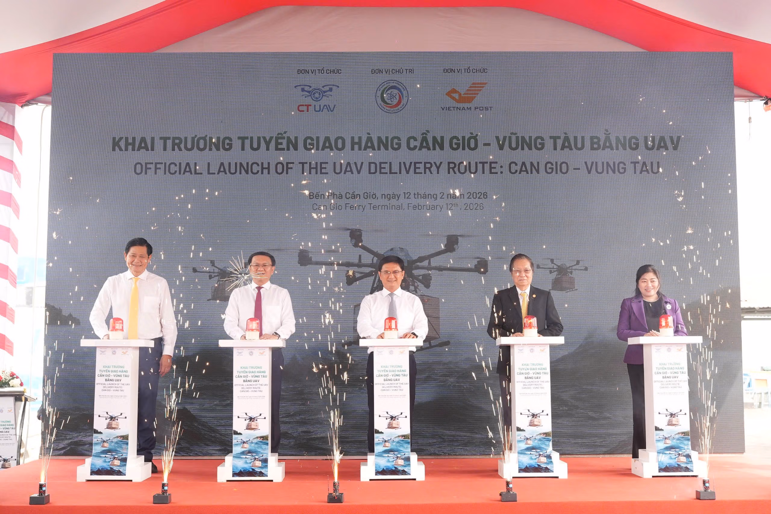 Sáng 12/2, Sở Khoa học và Công nghệ TP. Hồ Chí Minh phối hợp cùng Tổng công ty Bưu điện Việt Nam (Vietnam Post) và Công ty Cổ phần CT UAV chính thức công bố triển khai tuyến vận chuyển bưu chính bằng thiết bị bay không người lái (UAV) kết nối xã Cần Giờ và phường Vũng Tàu (TP. Hồ Chí Minh). Đây được xem là bước đi tiên phong trong ứng dụng các giải pháp giao thông thông minh, góp phần nâng cao chỉ số kinh tế số, giảm tải áp lực cho hạ tầng vận tải đường bộ của Thành phố.