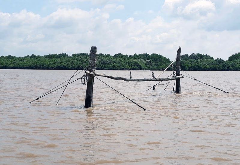 Mưa tạnh, trời quang, lại có gió nam thổi mát rượi. Anh Hội nói giờ đổi điểm câu được rồi. Chúng tôi quay xuồng chạy dọc sông Ba Lai, rồi dừng lại bên một đám chà.