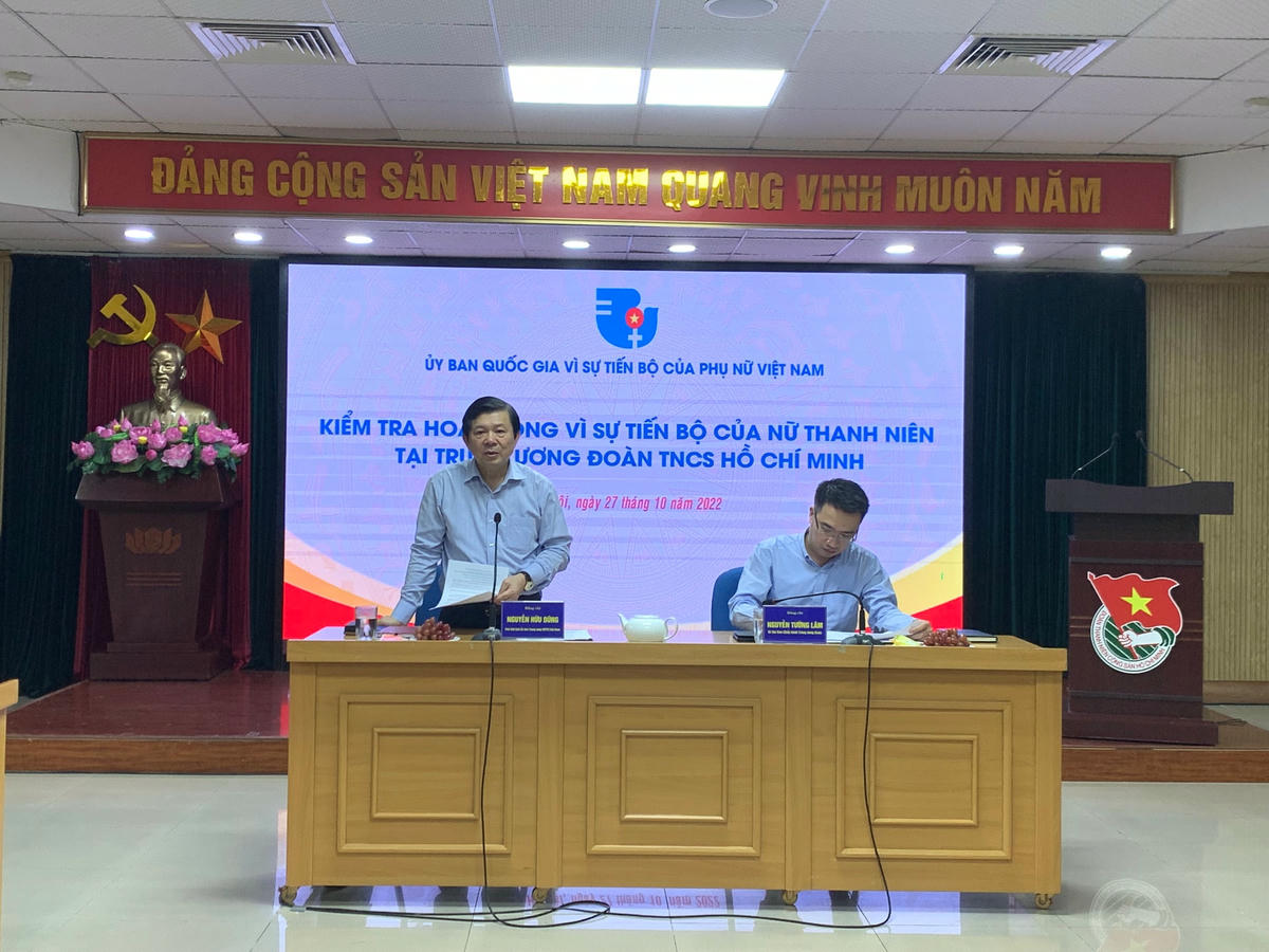 Sáng ngày 27/10, Đoàn kiểm tra của Ủy ban Quốc gia Vì sự tiến bộ của Phụ nữ Việt Nam do Phó Chủ tịch UBTƯ MTTQ Việt Nam Nguyễn Hữu Dũng làm Trưởng đoàn đã có buổi làm việc với Trung ương Đoàn TNCS Hồ Chí Minh.
