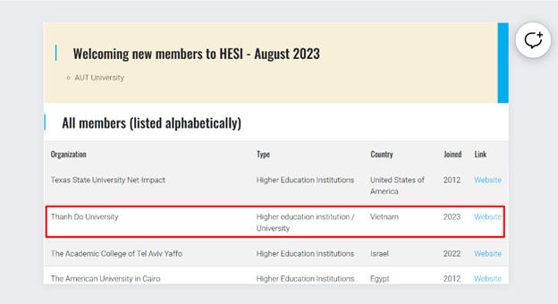 Với việc tham gia vào cộng đồng HESI, Trường Đại học Thành Đô sẽ có cơ hội tham gia vào các nhóm hành động, được cập nhật về các hoạt động và tham gia vào các sự kiện, hội thảo và các hoạt động liên quan khác.