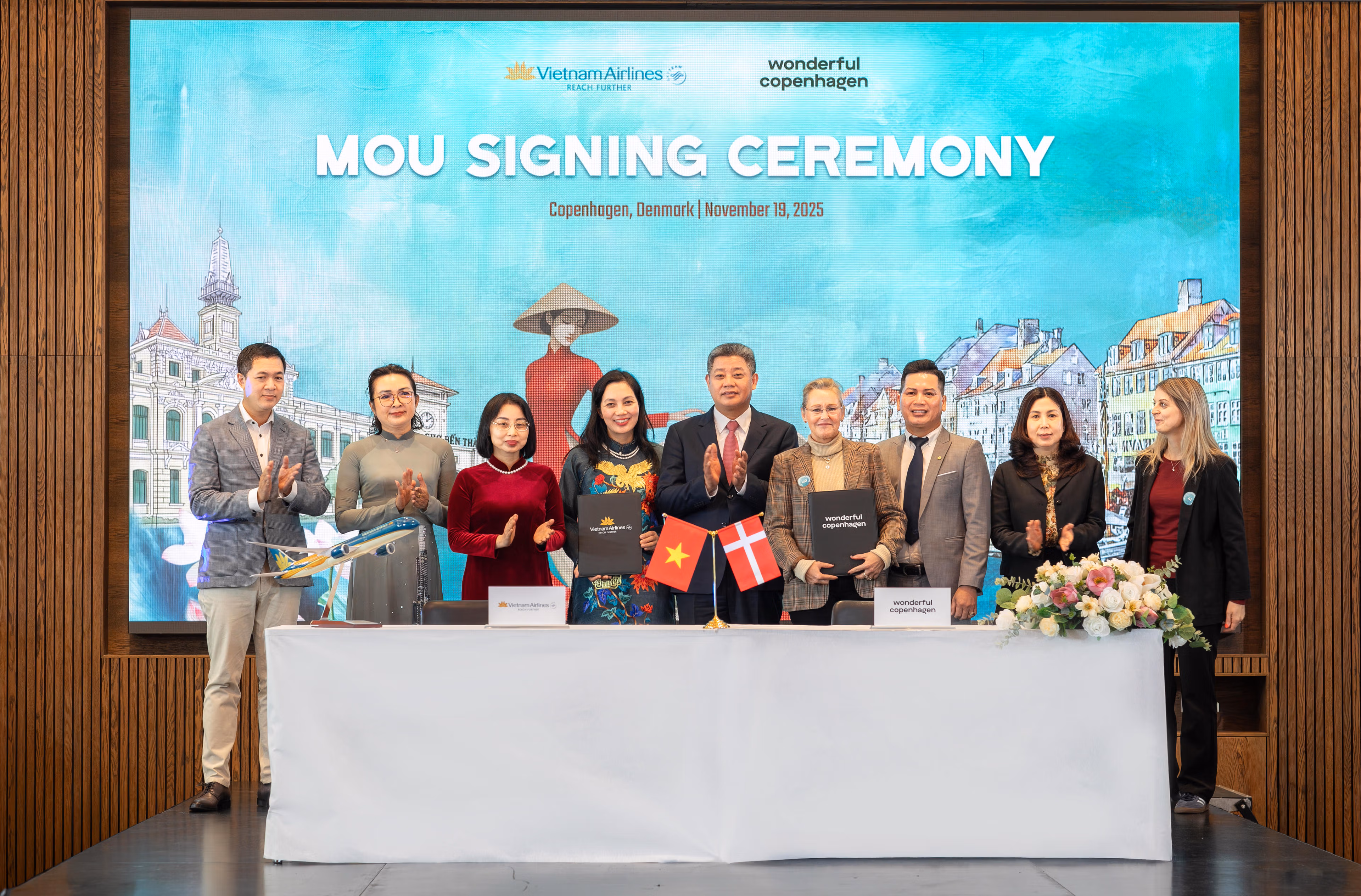 Bên cạnh công bố đường bay mới, Vietnam Airlines cùng các đối tác hàng đầu Đan Mạch đã ký kết 4 thỏa thuận hợp tác quan trọng nhằm tăng cường gắn kết trong lĩnh vực du lịch và hàng không. Theo đó, thỏa thuận hợp tác chiến lược giữa Vietnam Airlines và Greater Copenhagen Connected về xúc tiến du lịch và phát triển thị trường Bắc Âu tạo tiền đề để mở rộng hoạt động quảng bá điểm đến Việt Nam.