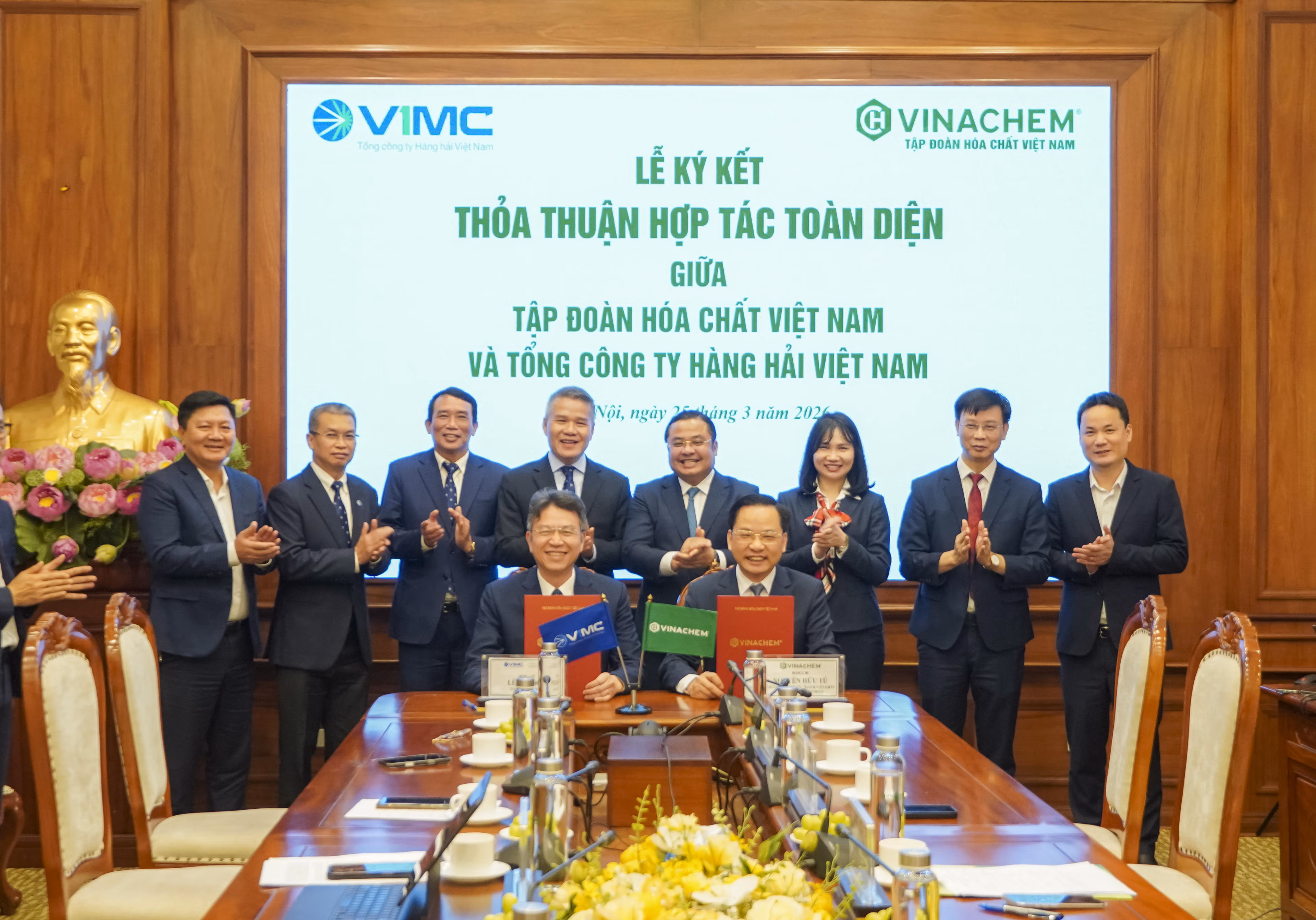 Chiều ngày 25/3/2026, Tập đoàn Hóa chất Việt Nam (Vinachem) và Tổng công ty Hàng hải Việt Nam (VIMC) đã tổ chức Lễ ký kết thỏa thuận hợp tác toàn diện giữa hai đơn vị, đánh dấu bước phát triển mới trong quan hệ hợp tác giữa hai doanh nghiệp nhà nước trong lĩnh vực công nghiệp và logistics hàng hải.