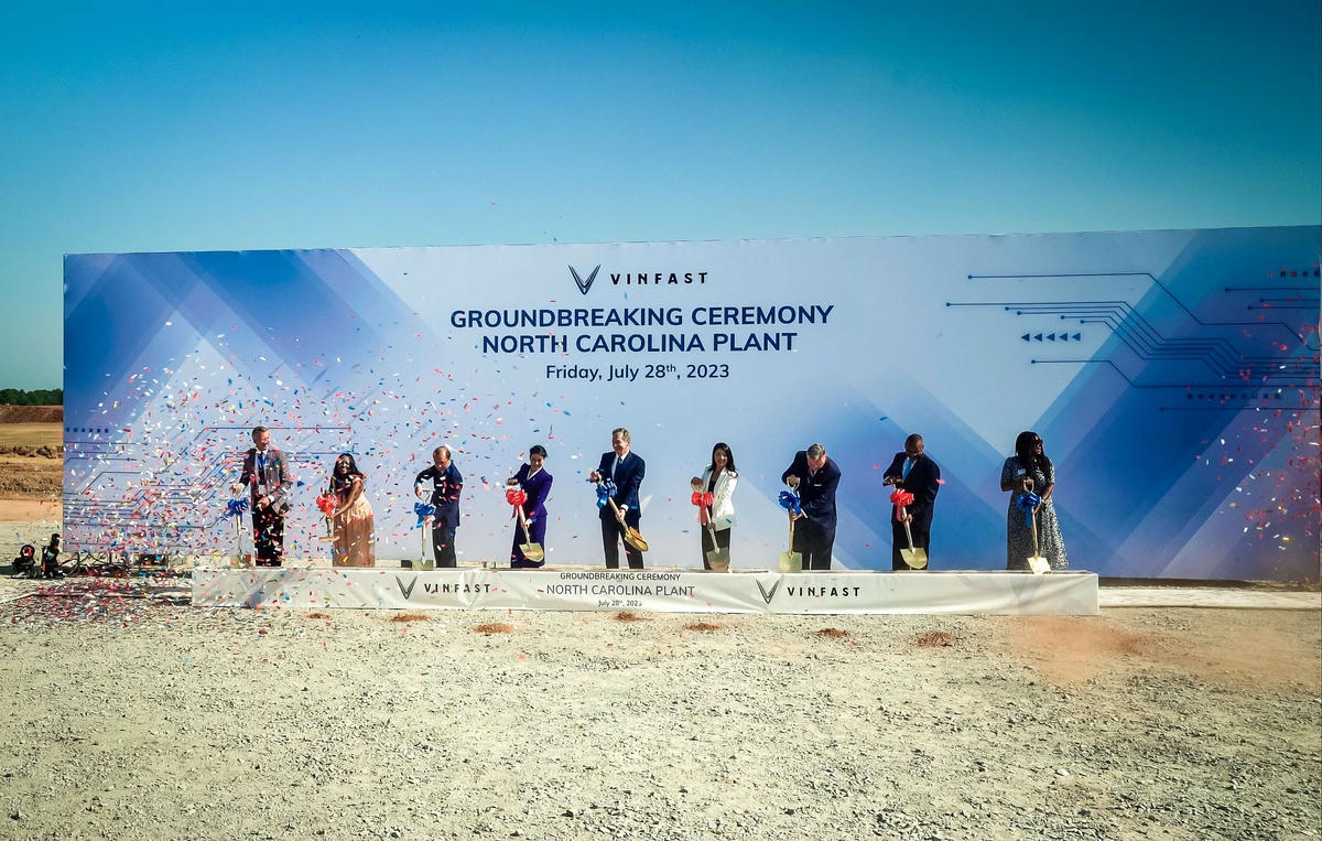 Ngày 28/7 (tức ngày 29/7 giờ Việt Nam), VinFast chính thức khởi công dự án nhà máy sản xuất xe điện tại hạt Chatham, Bắc Carolina.
