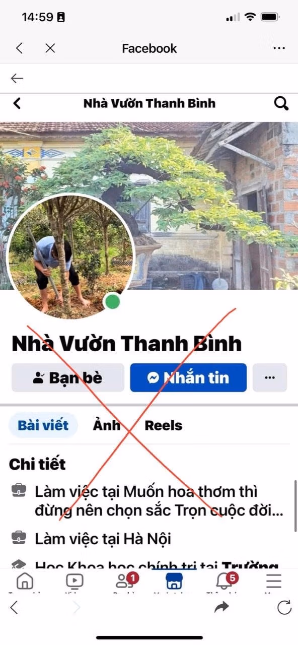 Theo nguồn tin, từ đầu năm 2024 đến nay, Đinh Xuân Bình đã tạo lập tài khoản Facebook “Nhà Vườn Thanh Bình” và tài khoản Zalo “Nhà Vườn Mộc Hương” sau đó đăng bài giao bán cây cảnh, xe đạp, loa đài.