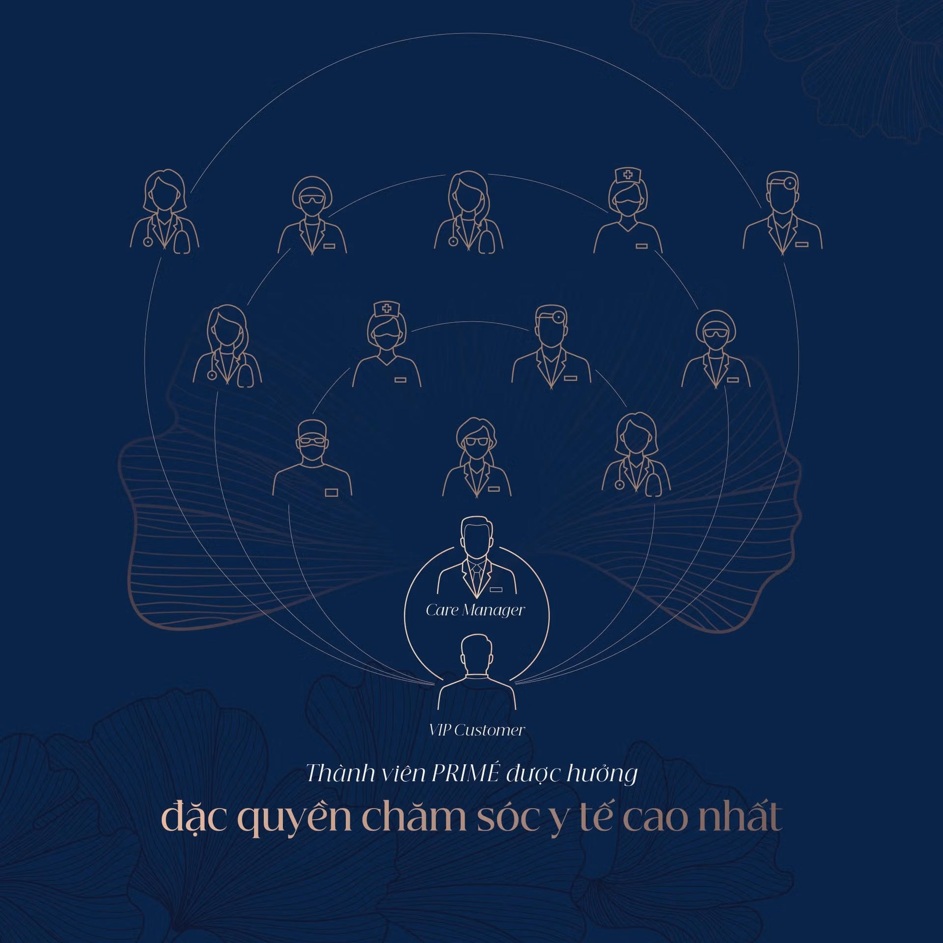 Mỗi khách hàng VinCare PRIMÉ sẽ được chăm sóc chuyên biệt bởi một Bác sĩ riêng và một Điều phối viên chăm sóc 24/7. Điều phối viên sẽ là đầu mối tiếp nhận mọi yêu cầu liên quan đến vấn đề sức khỏe và sắp xếp với đội ngũ chuyên môn, vận hành... để phục vụ thuận tiện nhất theo mong muốn của khách hàng trong thời gian nhanh nhất.