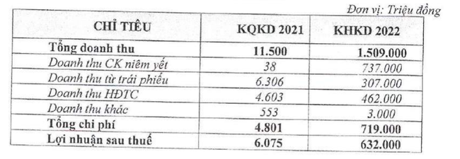 VPBank Securites đặt mục tiêu doanh thu 1.509 tỷ đồng, gấp 131 số doanh thu năm 2021. Lợi nhuận sau thuế năm 2022 được đặt ra là 632 tỷ đồng, gấp hơn 105 lần thực hiện trong cả năm 2021.