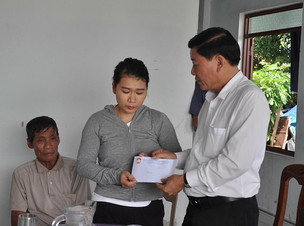 Thay mặt Ban cứu trợ tỉnh Quảng Nam, ông Lê Thái Bình gửi lời thăm hỏi, chia buồn đồng thời trao hỗ trợ 14 triệu đồng (7 triệu đồng/nạn nhân) cho gia đình 2 ngư dân bị tử vong (ngư dân Đỗ Văn Hải và Lương Hùng Vương, thôn Đông An, xã Tam Giang).