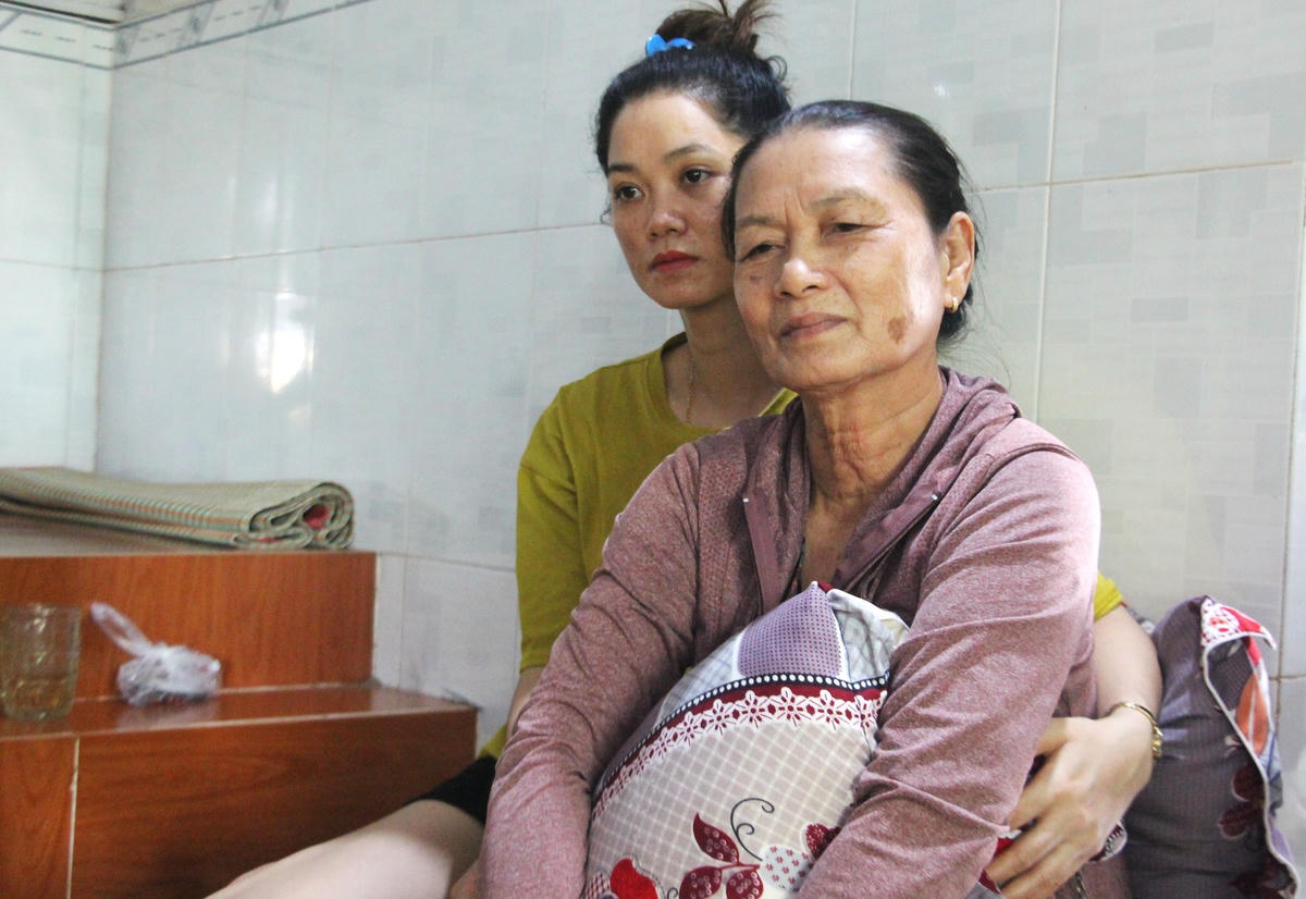 Ngồi khóc suốt đêm, bà Định Thị Thọ - vợ của ngư dân Đặng Tấn Tới ở thôn Đông An, xã Tam Giang là thuyền viên gặp nạn trên tàu cá QNa 90129TS, đôi mắt đỏ hoe, không còn sức lực nằm ngất xỉu liên tục.